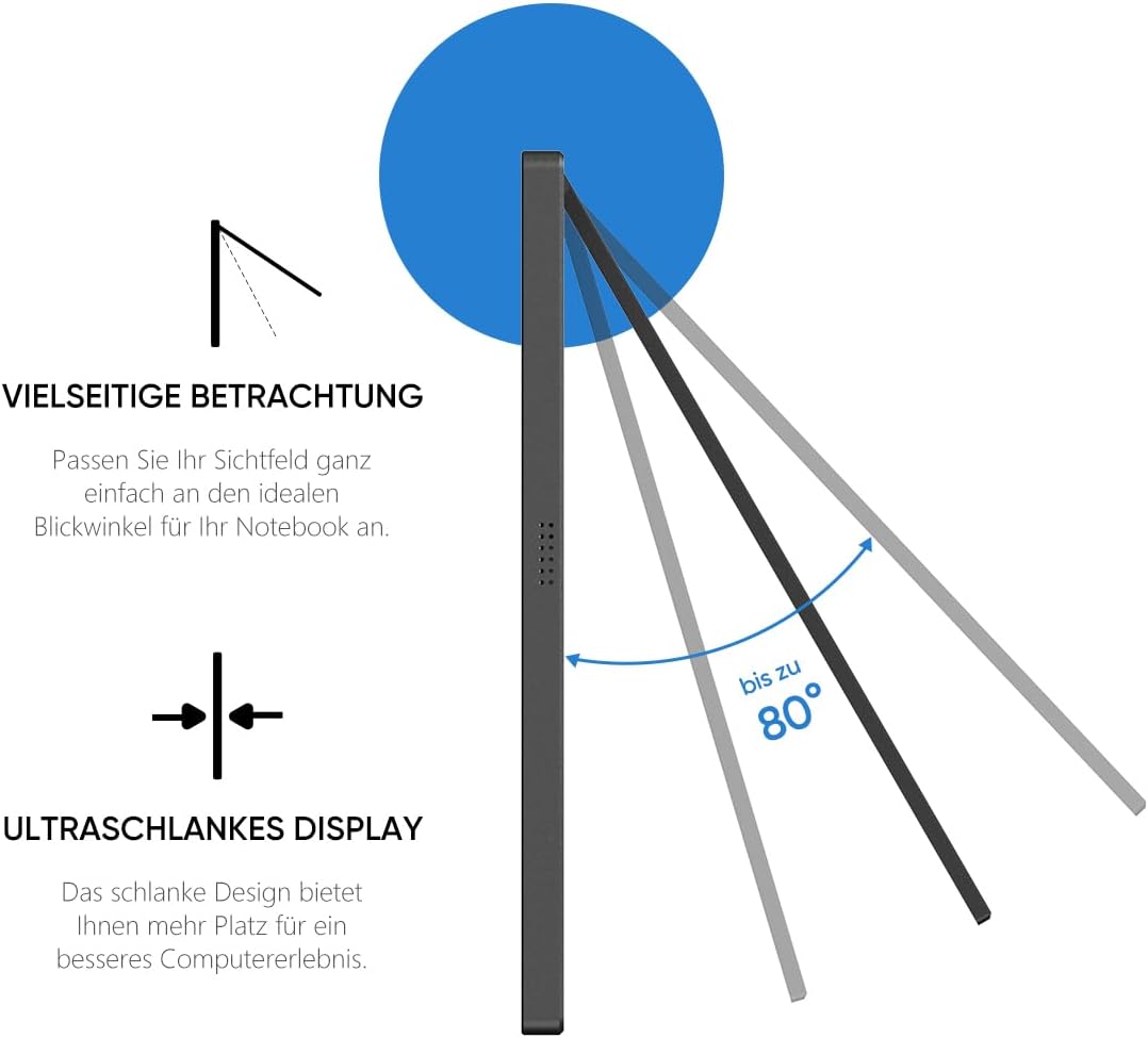 Ultradünnes Design: tragbarer 16,1-Zoll-Monitor von ARZOPA, Gewicht: 1,72 lb, Dicke 0,37 Zoll. Ausgestattet mit einer stabilen Einzelstangenhalterung, die den Monitor stabil hält, können Sie ihn problemlos mitnehmen.