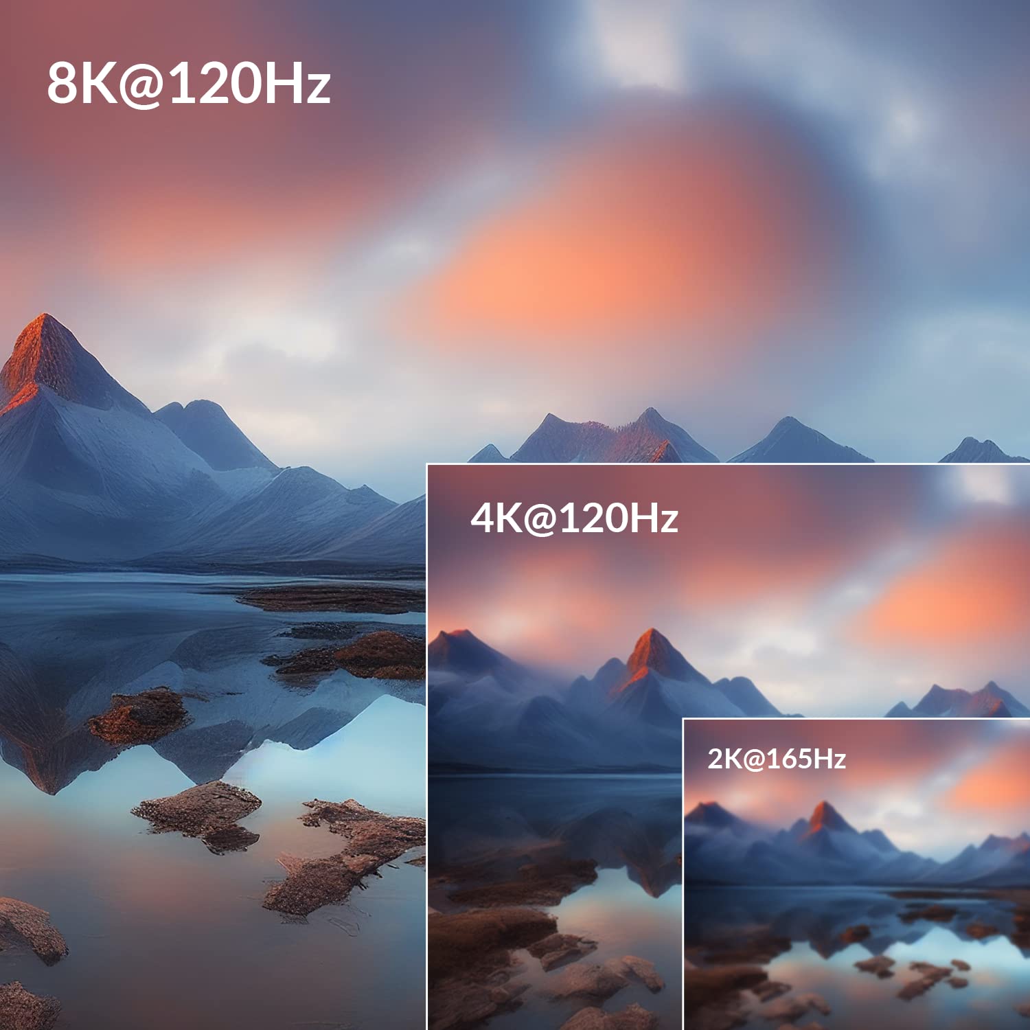 Ultrahohe Bildwiederholfrequenz: Genießen Sie wunderbare Spielerlebnisse, da 10K@120 Hz, 8K@120 Hz, 5K@120 Hz, 4K@120 Hz, 2560×1440@165 Hz/144 Hz/120 Hz und 1080P@240 Hz/165 Hz unterstützt werden. 144 Hz/120 Hz.