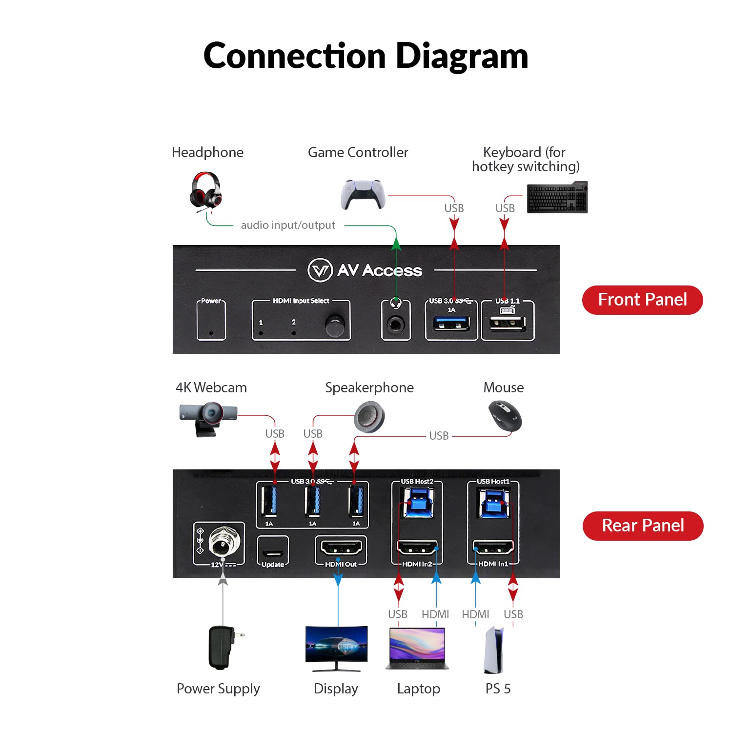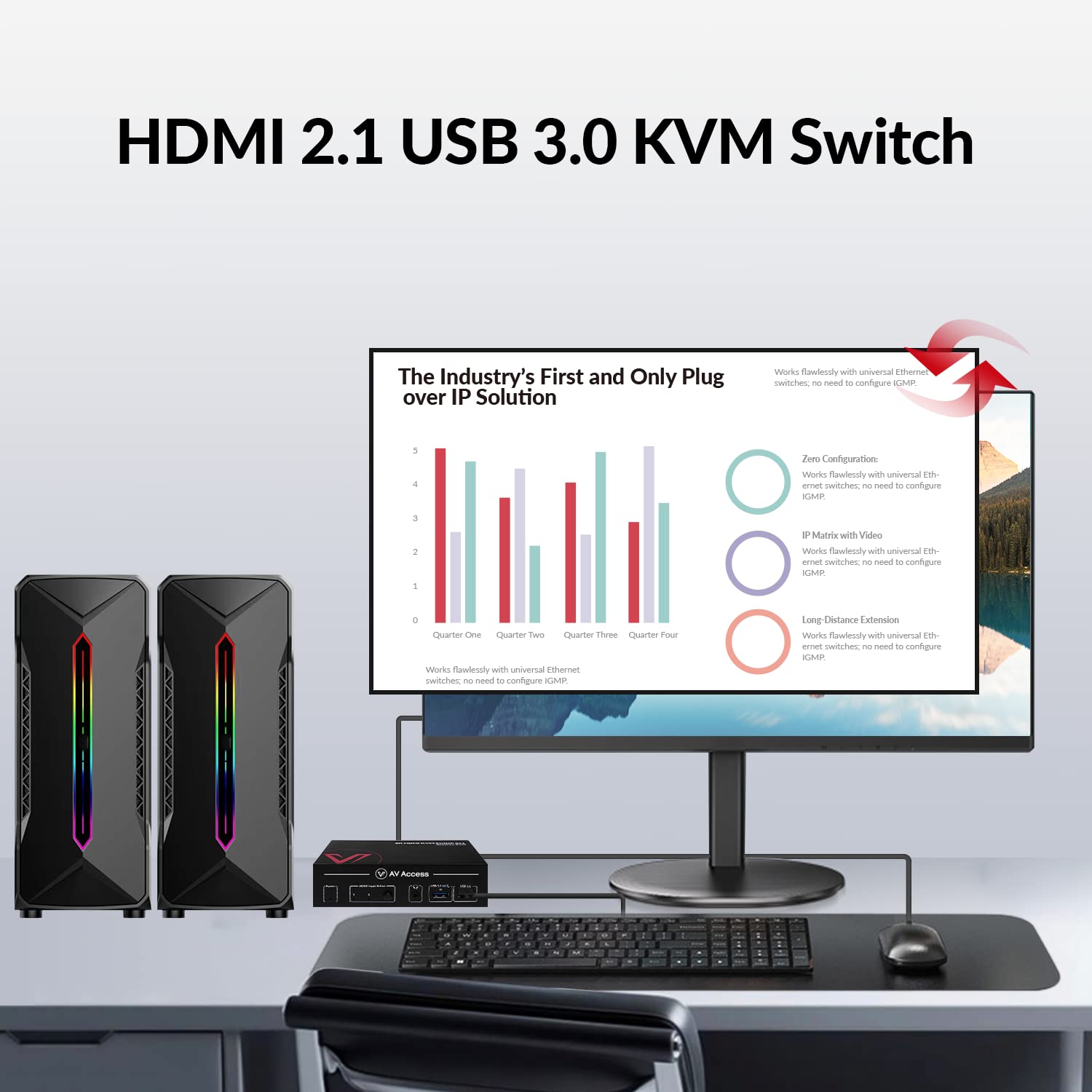 AV Access 8K KVM Switch 2 Computers 1 Monitor with HDMI 2.1, USB 3.0 & Hotkey Switching, Supports 10K@120hz, 8K@120hz, 1080P@240hz & 2K@165hz for All Operating Systems, Ideal for Gaming, Workstation