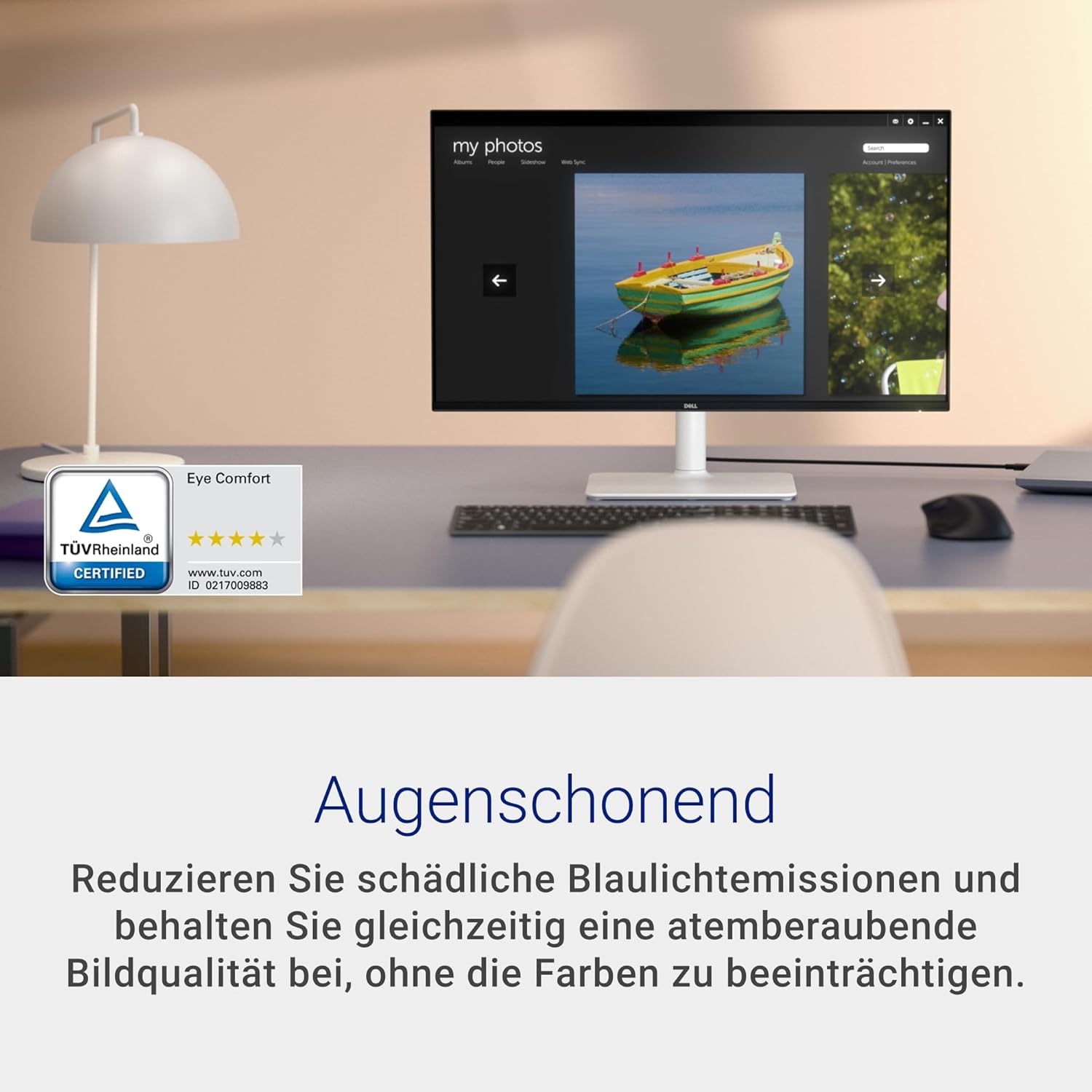 Priorisieren Sie den Sehkomfort mit diesem TÜV-zertifizierten 4-Sterne-Display. Reduzieren Sie schädliche Blaulichtemissionen und behalten Sie gleichzeitig eine atemberaubende Bildqualität bei, ohne die Farben zu beeinträchtigen.