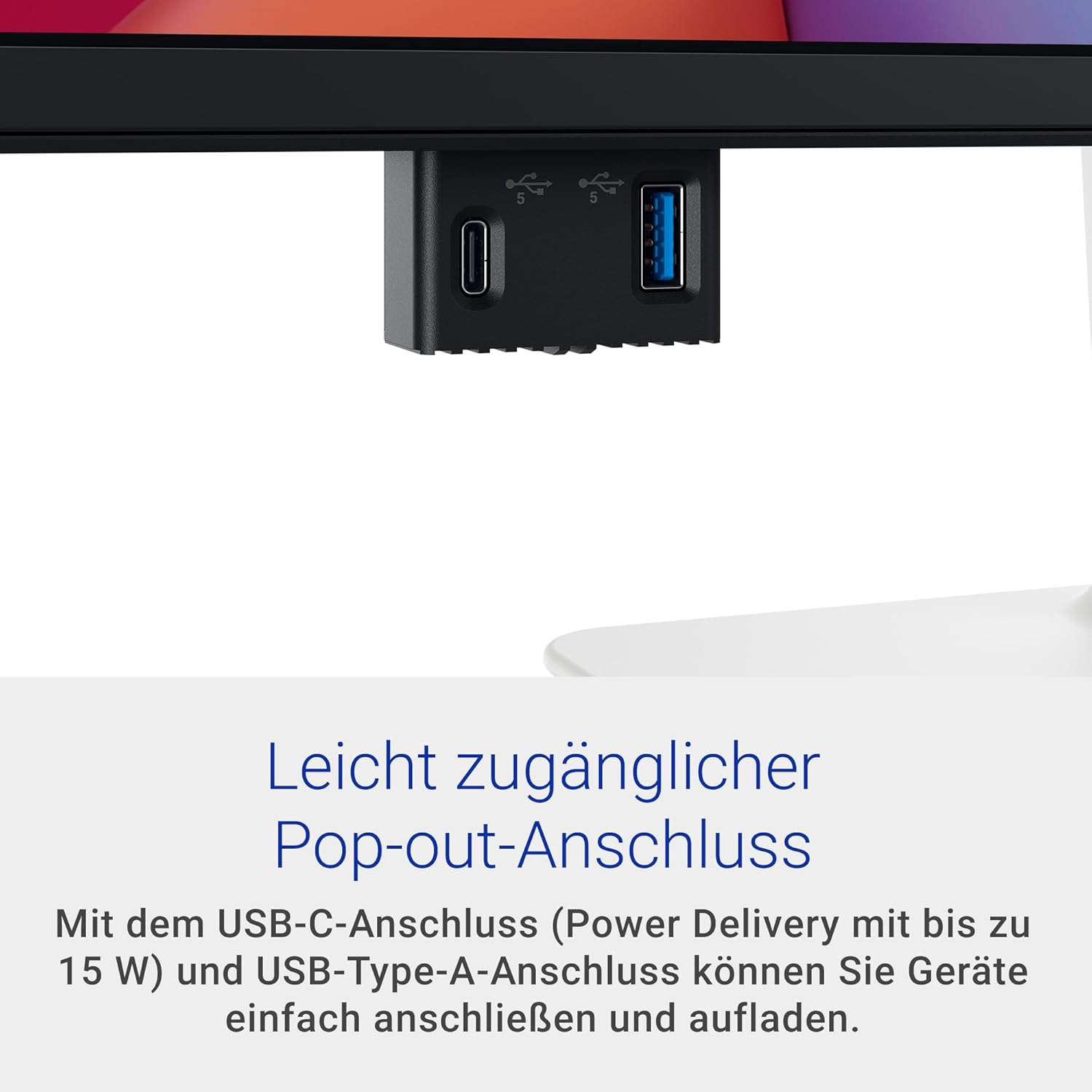 Mit dem USB-C-Anschluss (Power Delivery mit 15 W) und USB-Type-A-Anschluss können Sie Geräte einfach anschließen und aufladen.