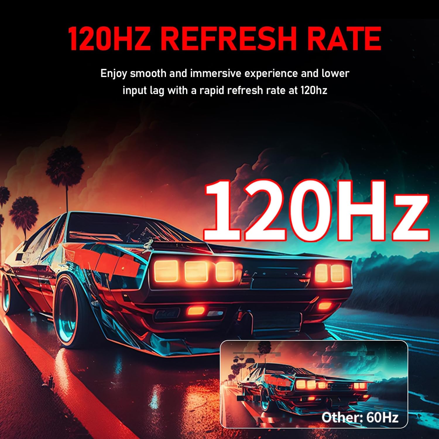Die 120Hz Bildwiederholrate reduziert die Bewegungsunschärfe deutlich und liefert ultraschmeidige Bildabfolgen – ideal für schnelle Actionspiele und Rennsimulationen. (Hinweis: 120Hz über DisplayPort; kompatibles Kabel erforderlich)