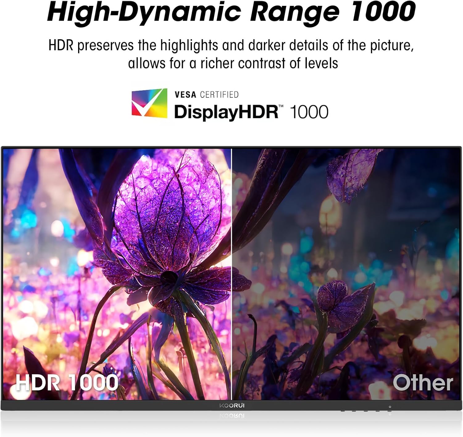 KOORUI Gaming Monitor 27 Inch PC Screen QHD (2560 x 1440), 240Hz, VA Mini LED, 1ms, Adaptive Sync, 2x HDMI 2.0 & DPort 1.4, HDR 1000, DCI-P3 95%, VESA 75 x 75 mm, Eye Care, Height Adjustable