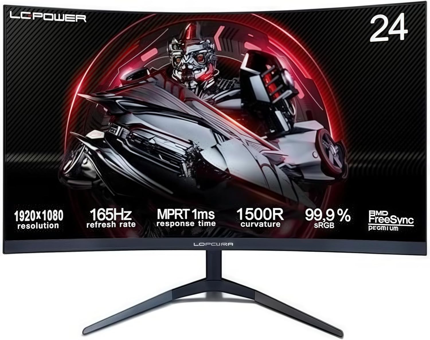 LC-POWER 24 Inch Curved Gaming Monitor 165 Hz, FHD 1920 x 1080 VA Panel, 1ms, AMD FreeSync, G Sync Compatible, HDMI 2.0, Display Port 1.4, VESA, Black, LC-M24-FHD-165-C-V2