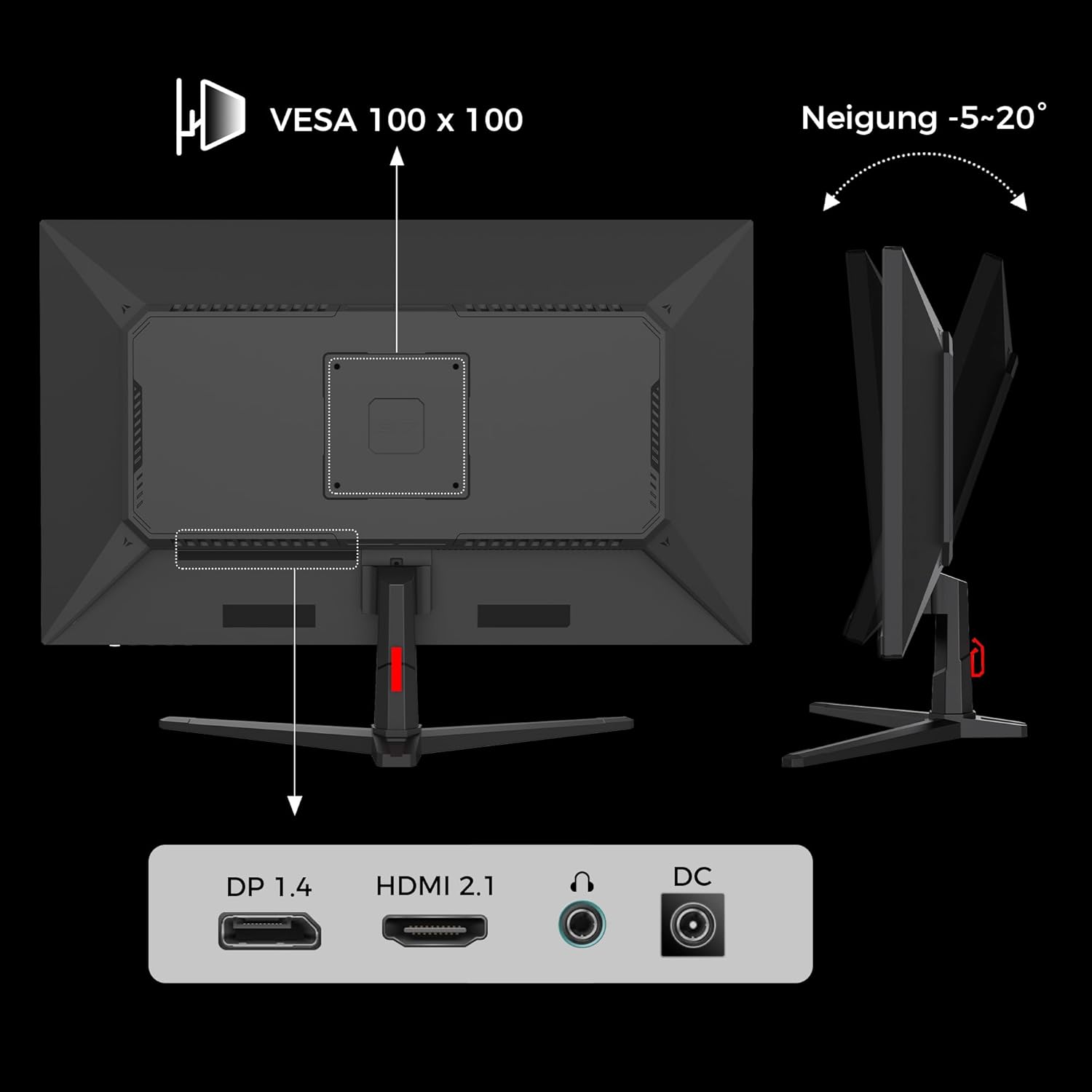 Das ergonomische Design mit Neigungswinkel von -5° bis 20°, 178° Betrachtungswinkel und VESA-Kompatibilität (100 x 100 mm) ermöglicht eine flexible Installation – perfekt für unterschiedliche Arbeitsumgebungen oder Gaming-Setups mit optimalem Betrachtungswinkel.