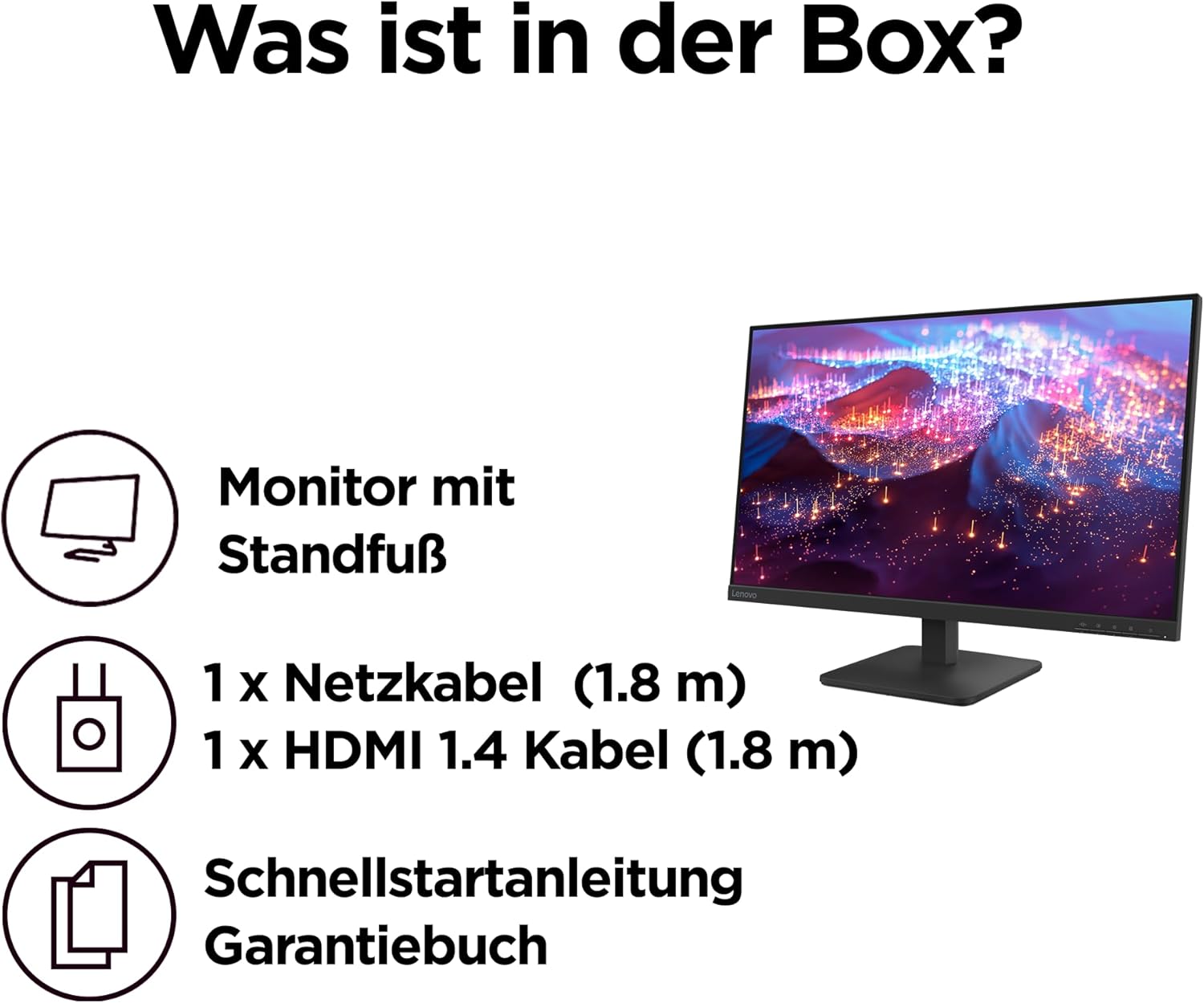 Lenovo L27-41 | 27“ Full HD WLED Monitor | 1920 x 1080 | 16:9 | 100Hz | 4ms Reaktionszeit | HDMI | VGA | 3-seitig IPS Panel | Raven schwarz | 4.1 kg