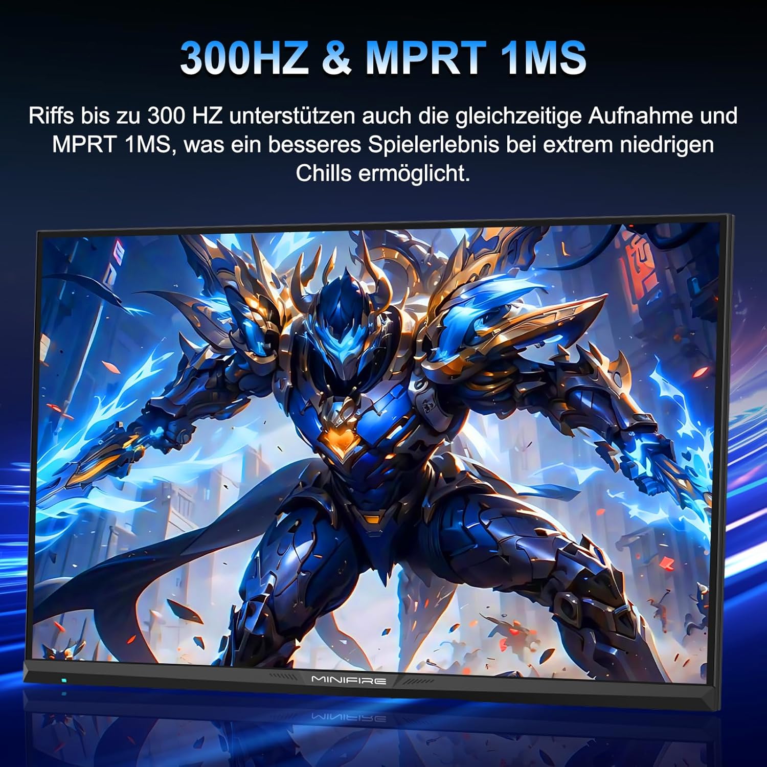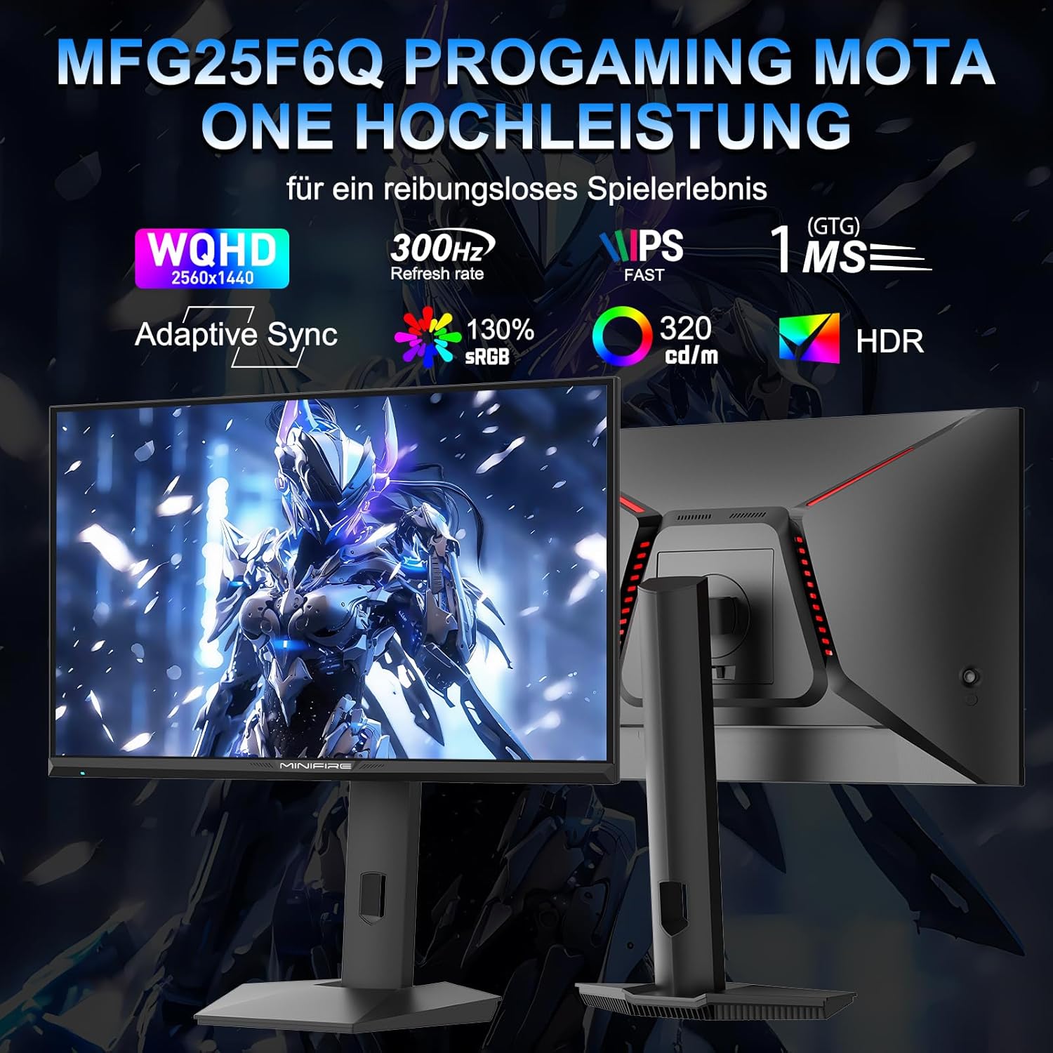 Minifire 24.5 Inch Gaming Monitor 300Hz/240Hz, QHD (2560 x 1440) Height-Adjustable, MPRT 1ms with 10 Bit Fast IPS Panel, sRGB 130%, 2 x HDMI 2.1 with VRR, Pip/PBP, AMD Free Sync