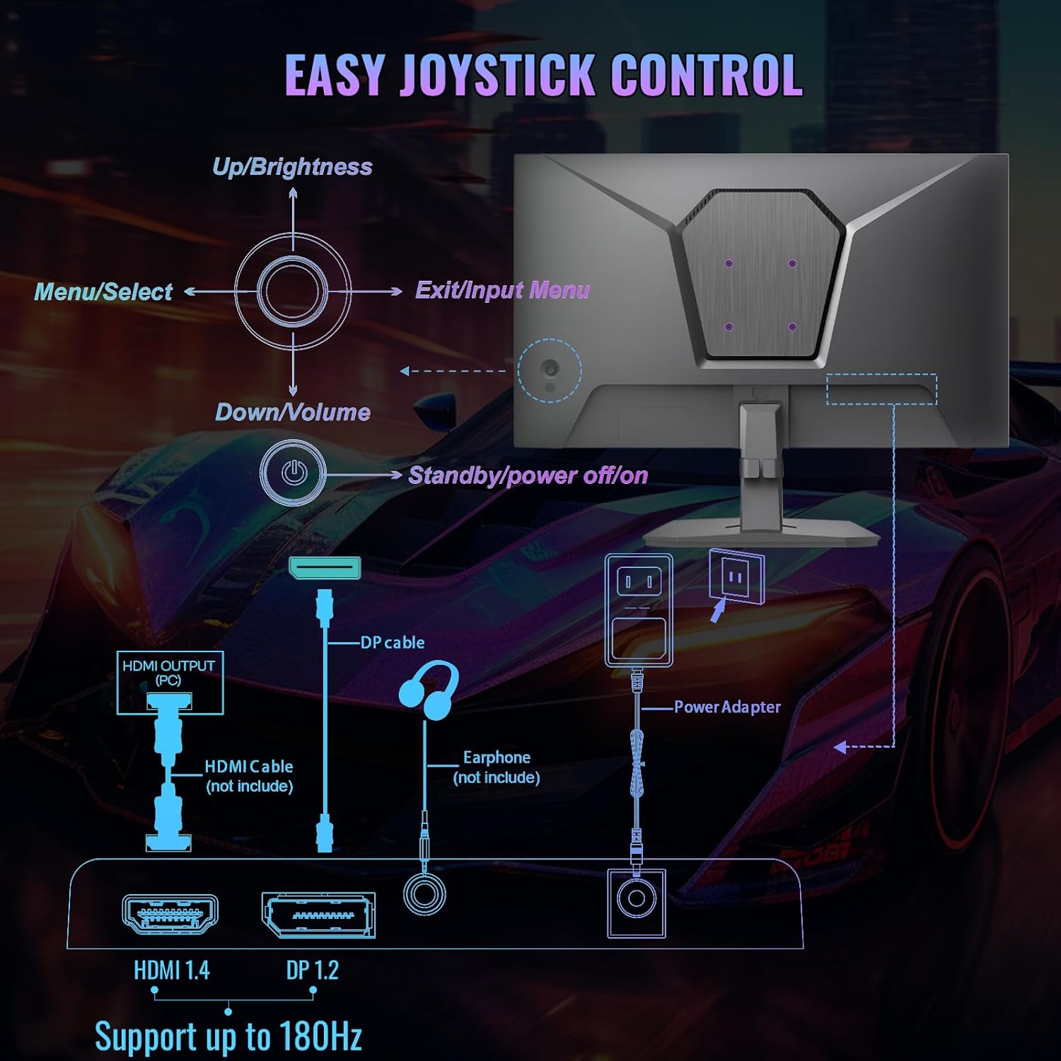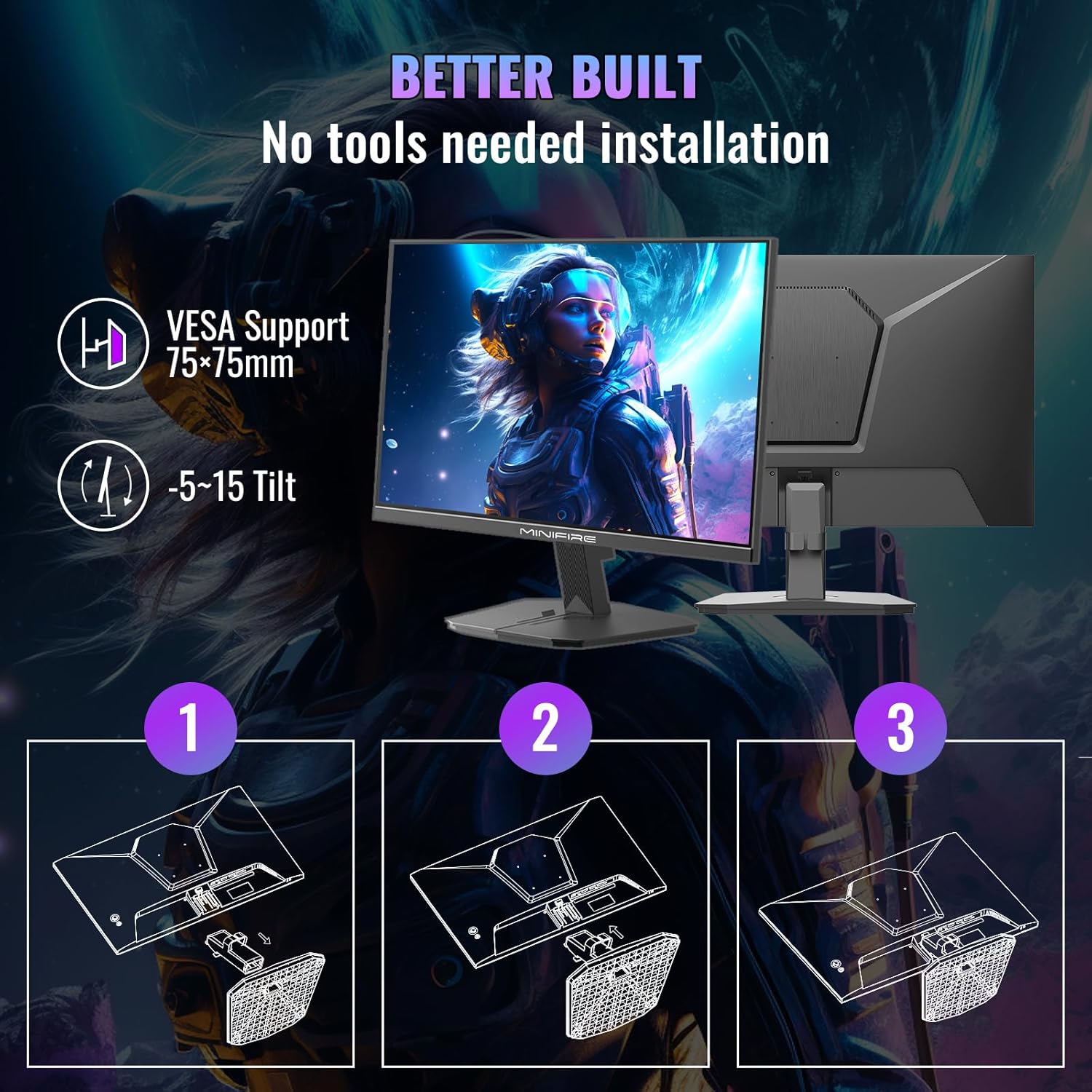 Minifire Gaming Monitor 24 Inches, 180 Hz, 1 ms, AdaptiveSync, IPS, 2 x HDMI 2.0/1 x DP 1.4 Ports, FHD, sRGB 110%, Monitor PC Screen (MFG24F4 HDMI Cable Included)