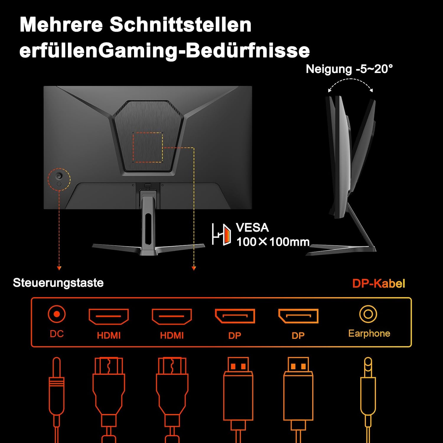 Konnektivität: Keine Lautsprecher! 2 x HDMI 2.1 (max. 2k 200 Hz) und 1 x DP 1.4 (max. 2k 200 Hz), Kopfhöreranschluss, wird mit DP-Kabel geliefert