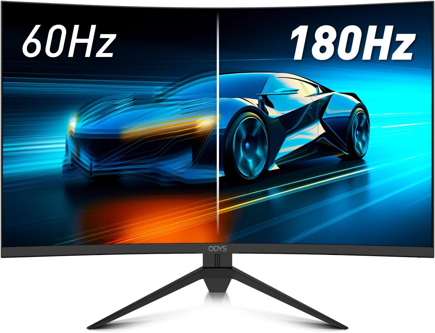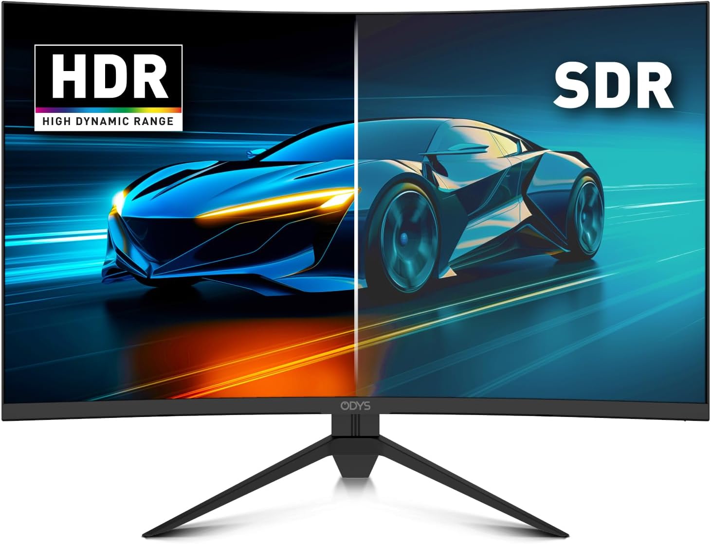 ODYS Gaming Monitor XP32-X – 32 Inch (80 cm), Curved (1500R), 180 Hz, WQHD (2,560 x 1,440 px), 1 ms Response Time (MPRT), HDR, FreeSync/G-Sync Comp., Eye Care, HDMI, DP, 3.5 mm Audio