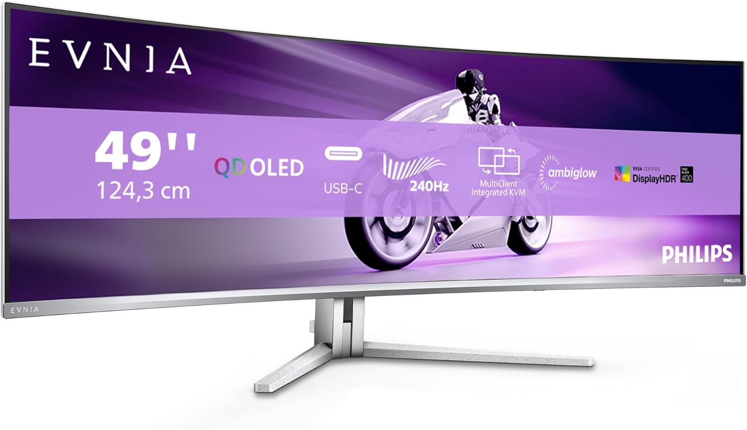 PHILIPS Evnia 49M2C8900AM – 49 Inch DQHD OLED Curved Gaming Monitor, 240 Hertz, 0.03 ms GtG, HDR400, Ambiglow (5120 x 1440, HDMI 2.1, DisplayPort 1.4, USB-C, USB Hub) White