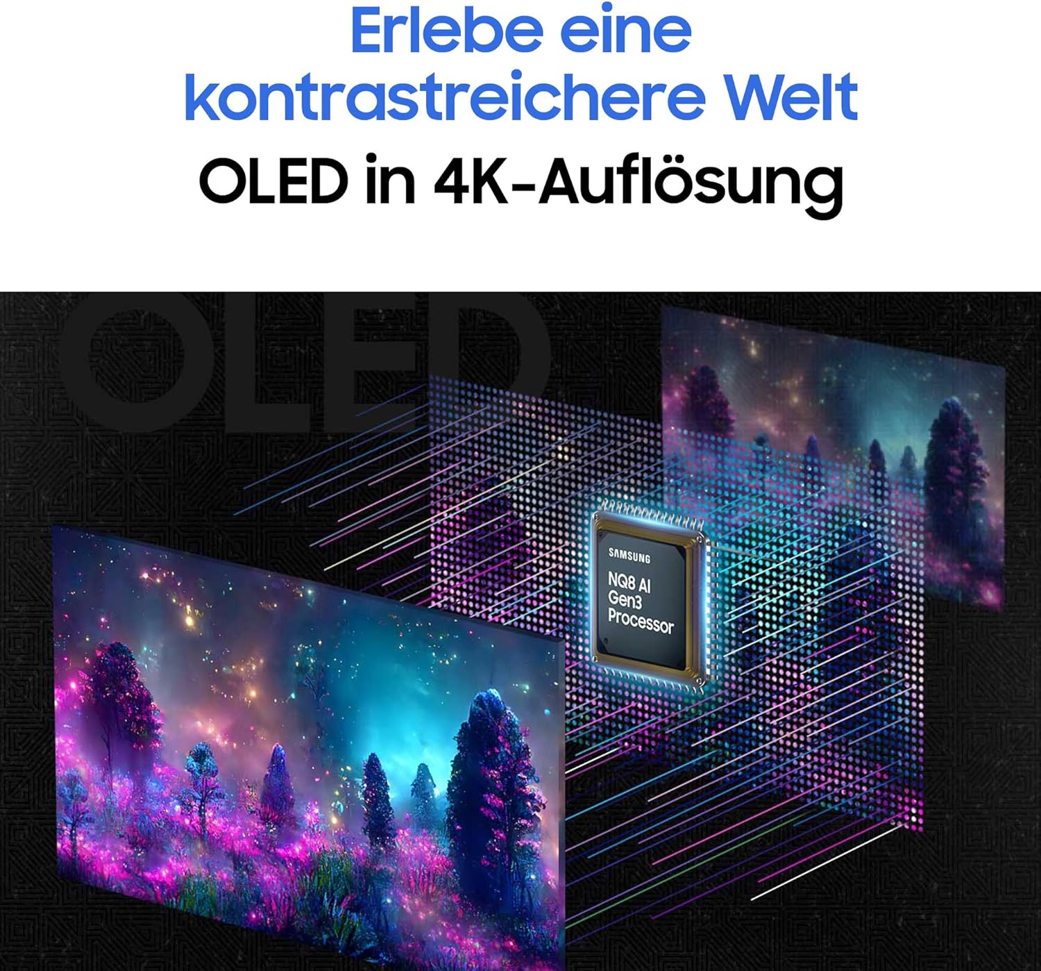 Starke Leistung mit KI: NQ8 AI Gen3-Prozessor zum Hochskalieren niedriger Auflösungen auf fast 4K, tiefes Schwarz und dunkle Farben, großer Farbraum mit 250 Nits Helligkeit