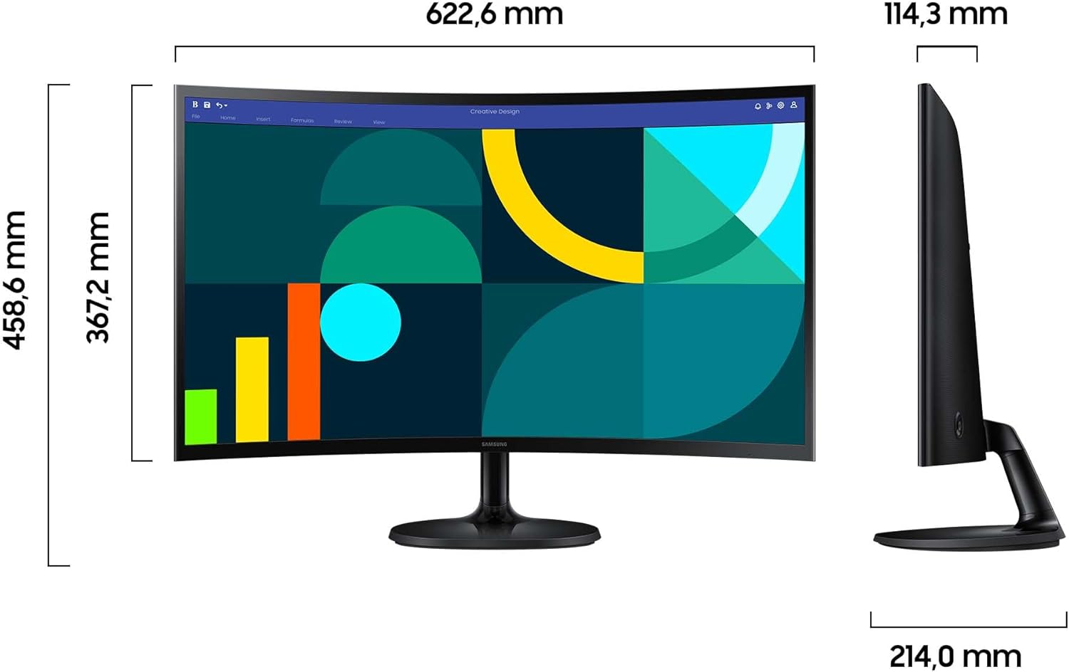 Packungsinhalt: 1 x Samsung LS27D364GAUXEN S36GD Essential gebogener Monitor, 27-Zoll-Monitor, 1,5 m Netzkabel, 1 x HDMI-Kabel, Schwarz
