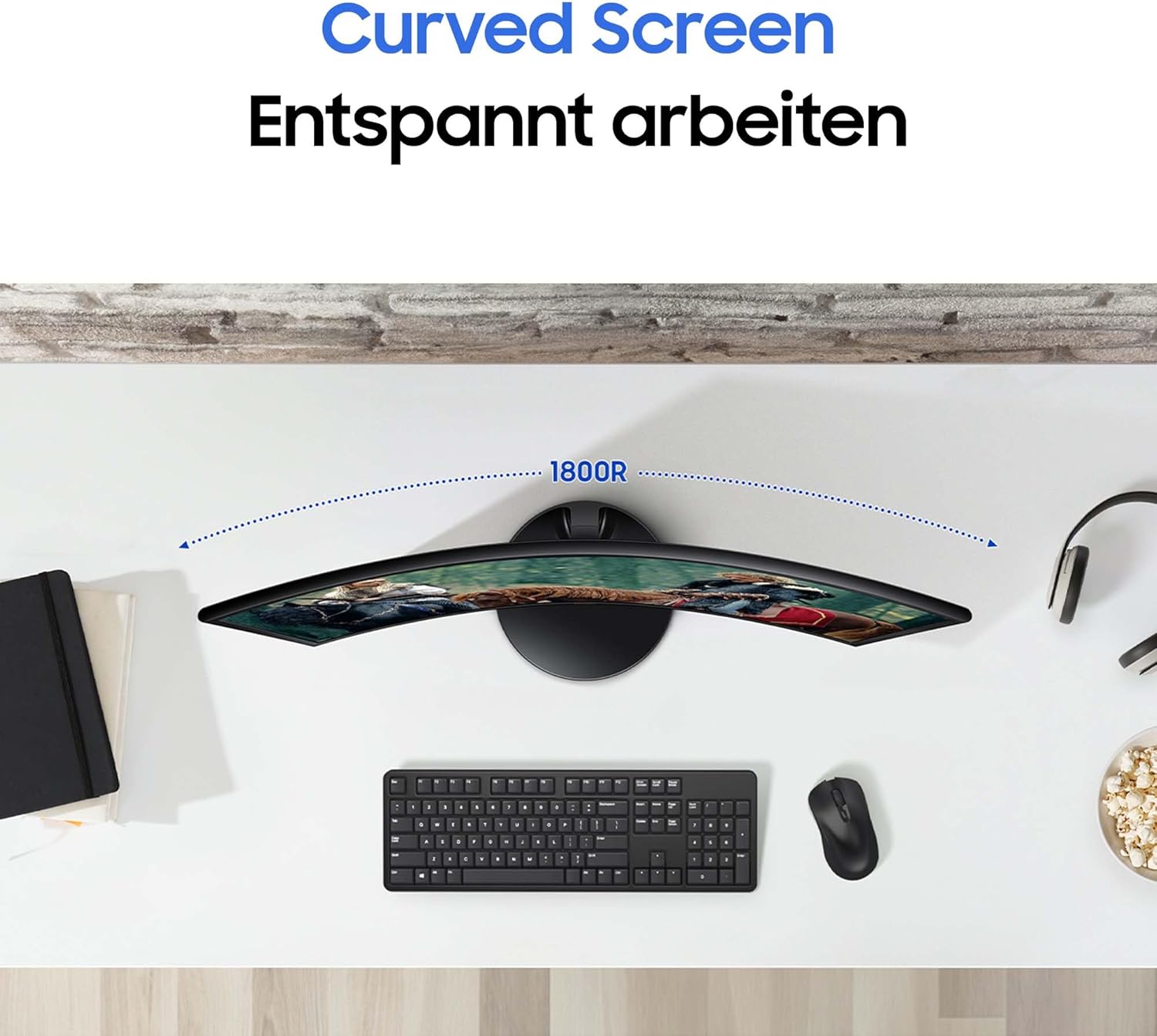 Einfach und effizient: PC-Monitor mit Full-HD-Auflösung und gebogenem VA-Panel mit einer Krümmung von 1.800R für ein noch intensiveres Seherlebnis und ein breiteres Sichtfeld