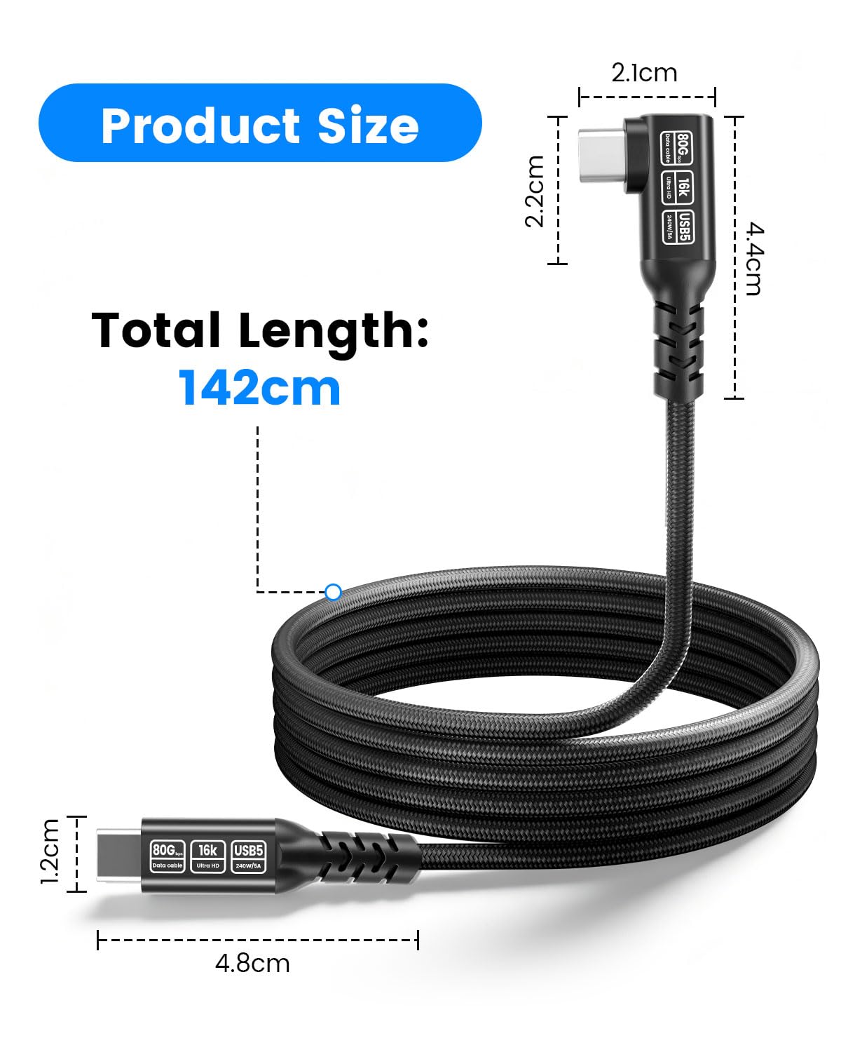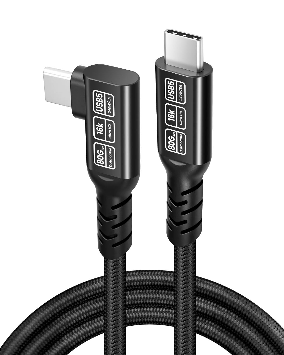 Hochwertiges Aluminium + geflochtenes Design: Robustes, langlebiges USB4-Kabel mit E-Marker-Chip, getestet auf Signalstabilität, Haltbarkeit und Sicherheit. Der um 90 Grad abgewinkelte Stecker schützt die Anschlüsse und reduziert Kabelbrüche bei intensiver Nutzung.