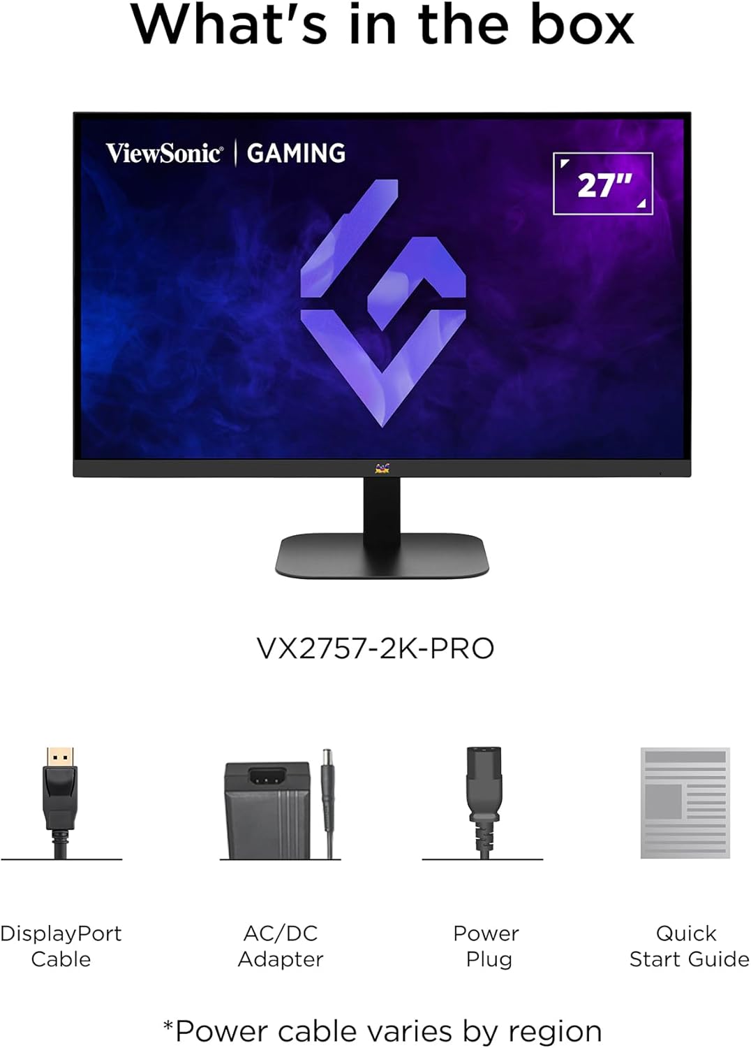ViewSonic VX2757-2K-PRO Gaming Monitor, 27 Inches, WQHD 2560p x 1440p, 200Hz, 1ms MPRT, Super Clear IPS, HDR10, G-Sync Compatible, 2X HDMI & DisplayPort
