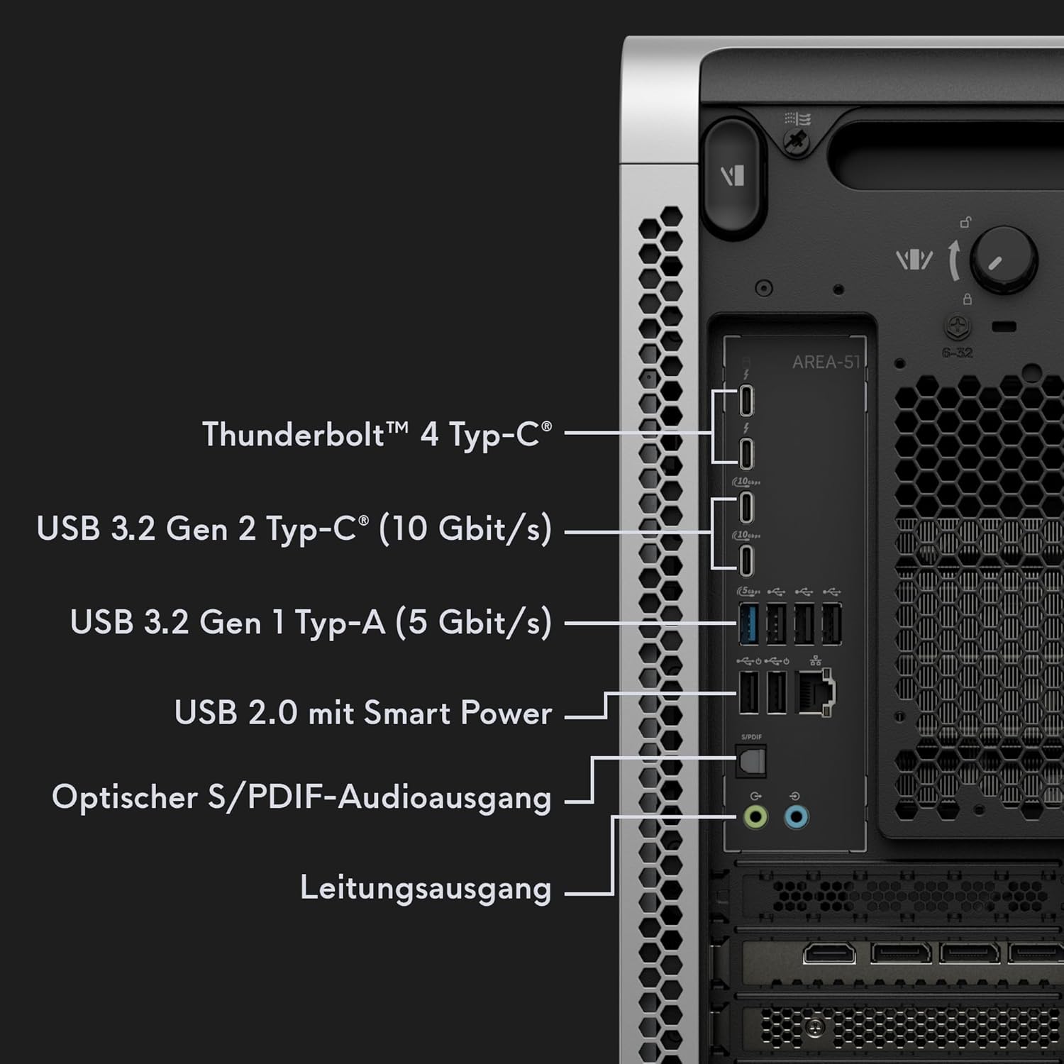 Jedes Element des Area-51 wurde bewusst entwickelt, um ein herausragendes, immersives Erlebnis in einem wunderschönen, stromlinienförmigen und zukunftssicheren Gehäuse zu erzeugen.