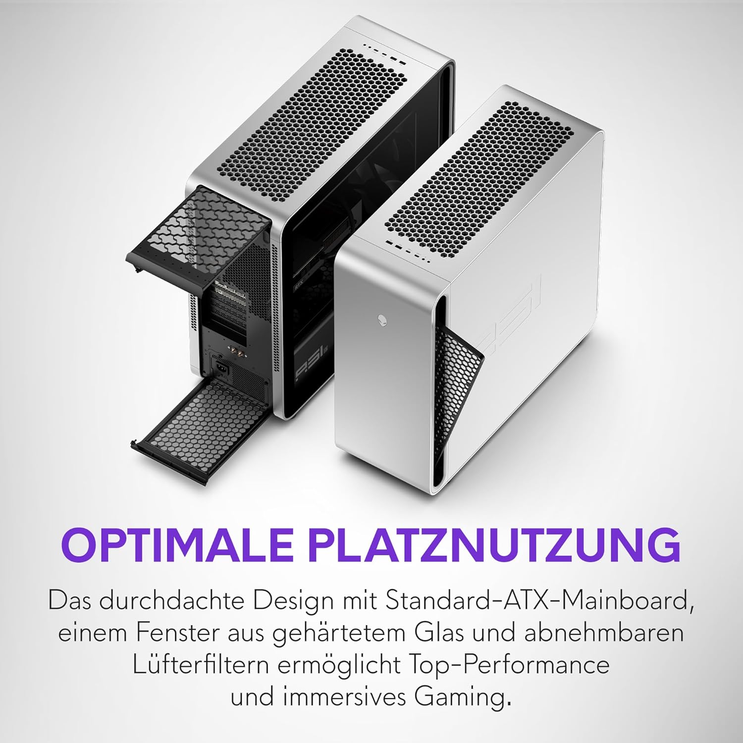 Das robuste hitze- und kratzfeste Glas an der stahlverstärkten Klappe bringt das Innenleben und die AlienFX-Beleuchtung zur Geltung.