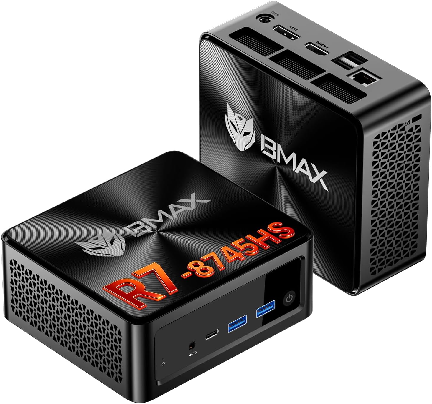 BMAX B8APro Mini PC AMD Ryzen 7 8745HS (8 Cores, up to 4.9 GHz), 16GB DDR5, 512GB PCIe 4.0 SSD, Radeon 780M Graphics, 8K, Triple Display, TPD 45W, WiFi 6, BT, 2.5G LAN Mini Computer Gaming/Office/Home