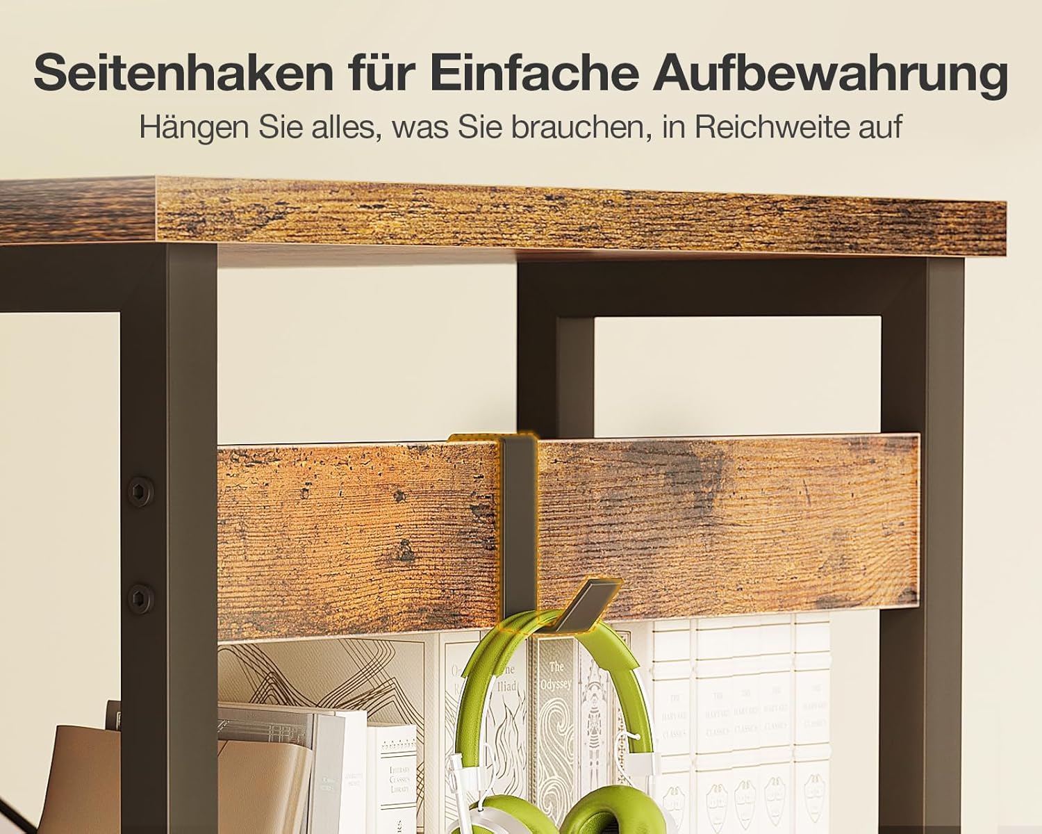 Zweistufige Ablagen: Der Coleshome-Schreibtisch mit Stauraum bietet großzügigen Stauraum für eine aufgeräumte Arbeitsfläche. Die Aufbewahrungsregale können als Bücherregal oder zweistufiger Organizer verwendet werden und erfüllen alle Ihre Aufbewahrungsbedürfnisse zu Hause oder im Büro. Diese Telearbeitsstation optimiert Ihre Lebensqualität.