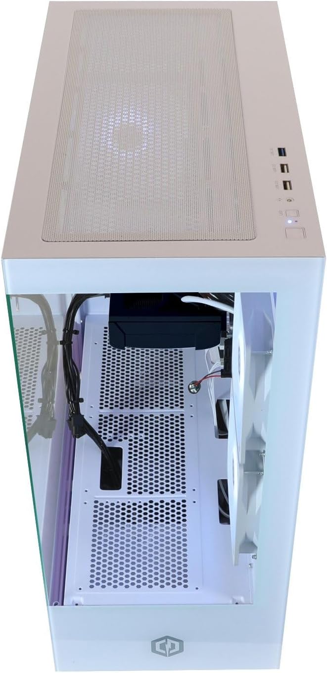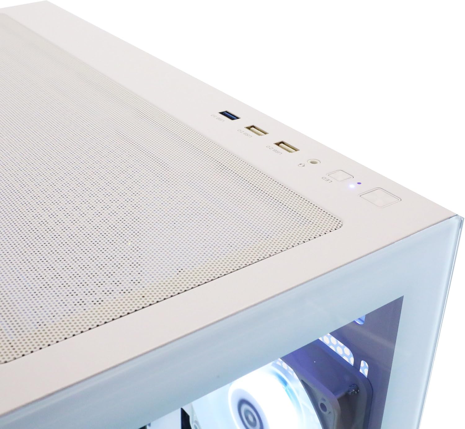 Gehäuse und Kühlung: CyberPowerPC Prism Panoramic Gaming-Gehäuse (weiß) | 3x RGB-LED-Lüfter | AMD Standardkühler