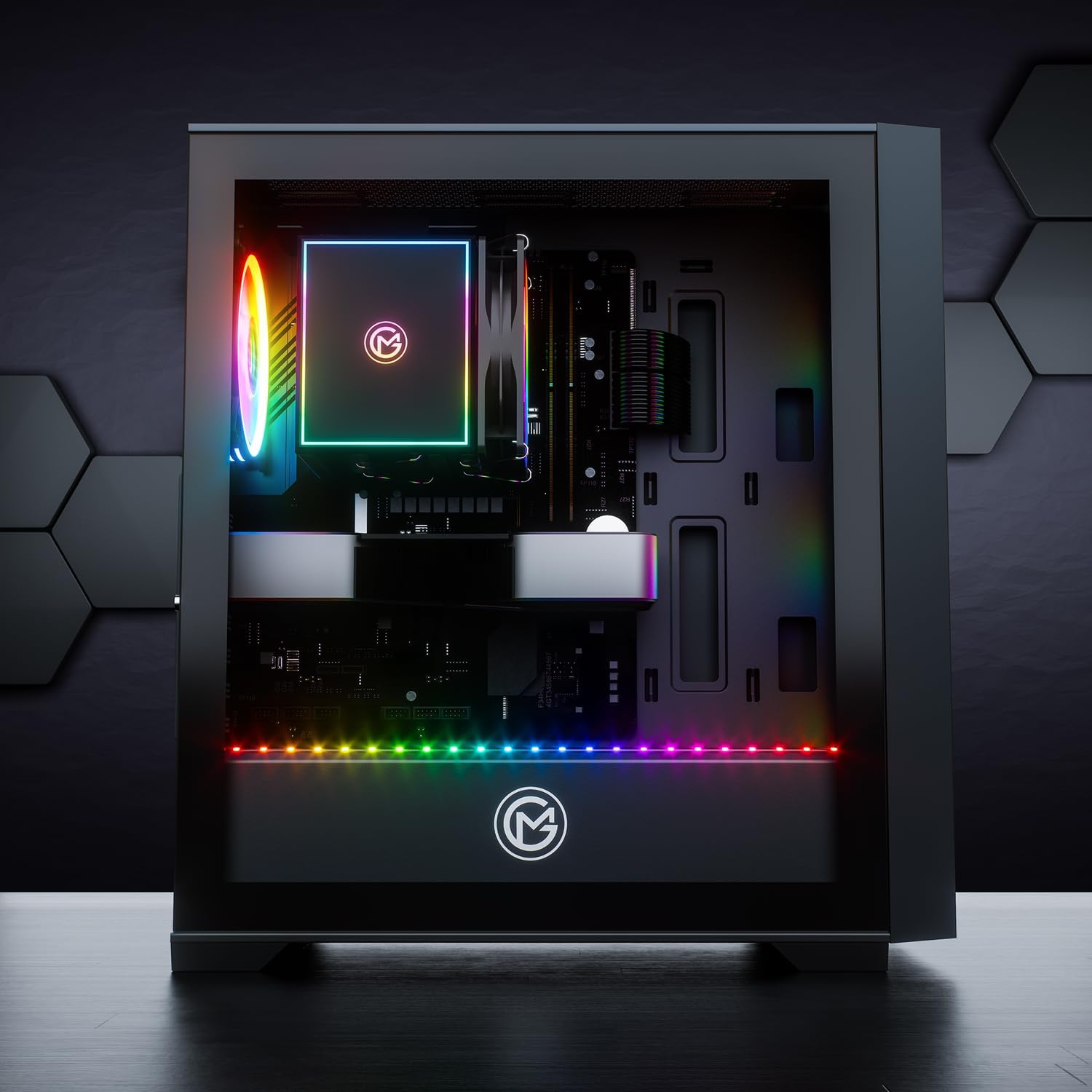 Der Flow Gaming PC ist die erste Wahl, wenn Sie bei Ihrem neuen PC auf gutes Aussehen, Anpassungsmöglichkeiten und Leistung nicht verzichten möchten. Ein elegantes Dark Mirror-Glas-Frontpanel und vier RGB-Lüfter bilden einen fantastischen Einstieg in die Welt des High-End Gaming. Außerdem verfügt der PC über ein durchgehendes Seitenteil aus Glas, das den Blick auf die RGB-Luftkühlung frei gibt.