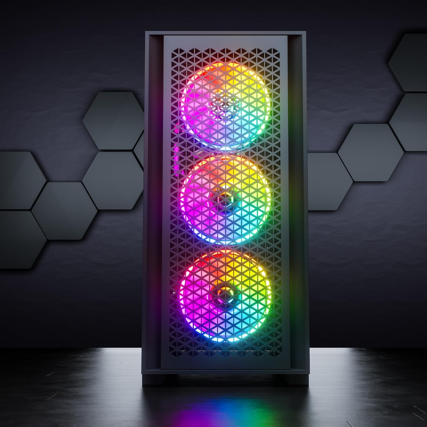 4 x 120 mm A-RGB Gehäuselüfter sorgen für einen super Airflow im Flow und sehen auch noch traumhaft schön aus.