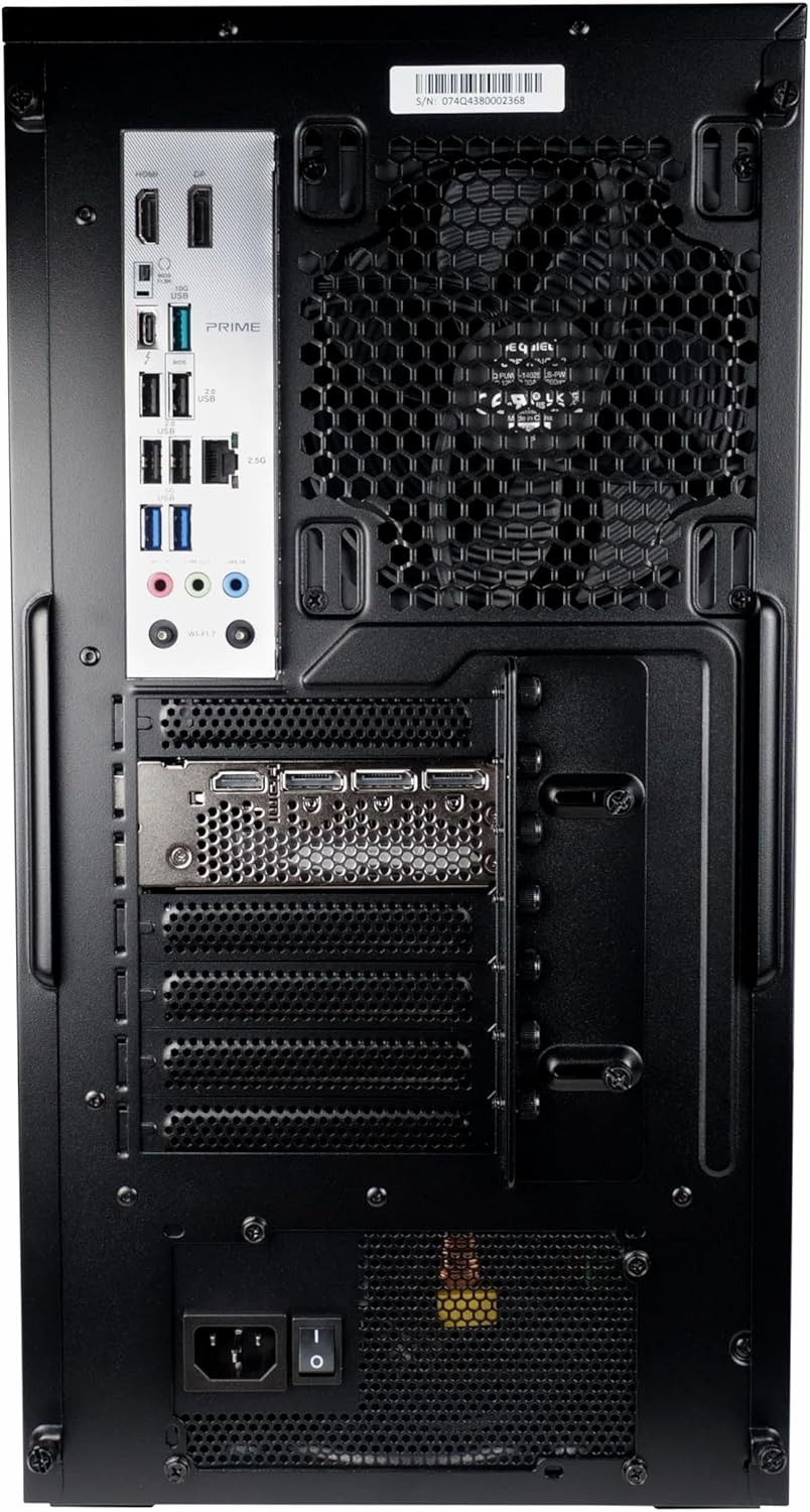 Windows 11 Pro comes pre-installed, and the system comes ready to go – just unpack, plug in and start. For modern connectivity, WiFi 7, Bluetooth (antenna included – please connect for a stable connection) and Thunderbolt 4. The 80+ Gold power supply ensures high energy efficiency to effectively reduce electricity costs.