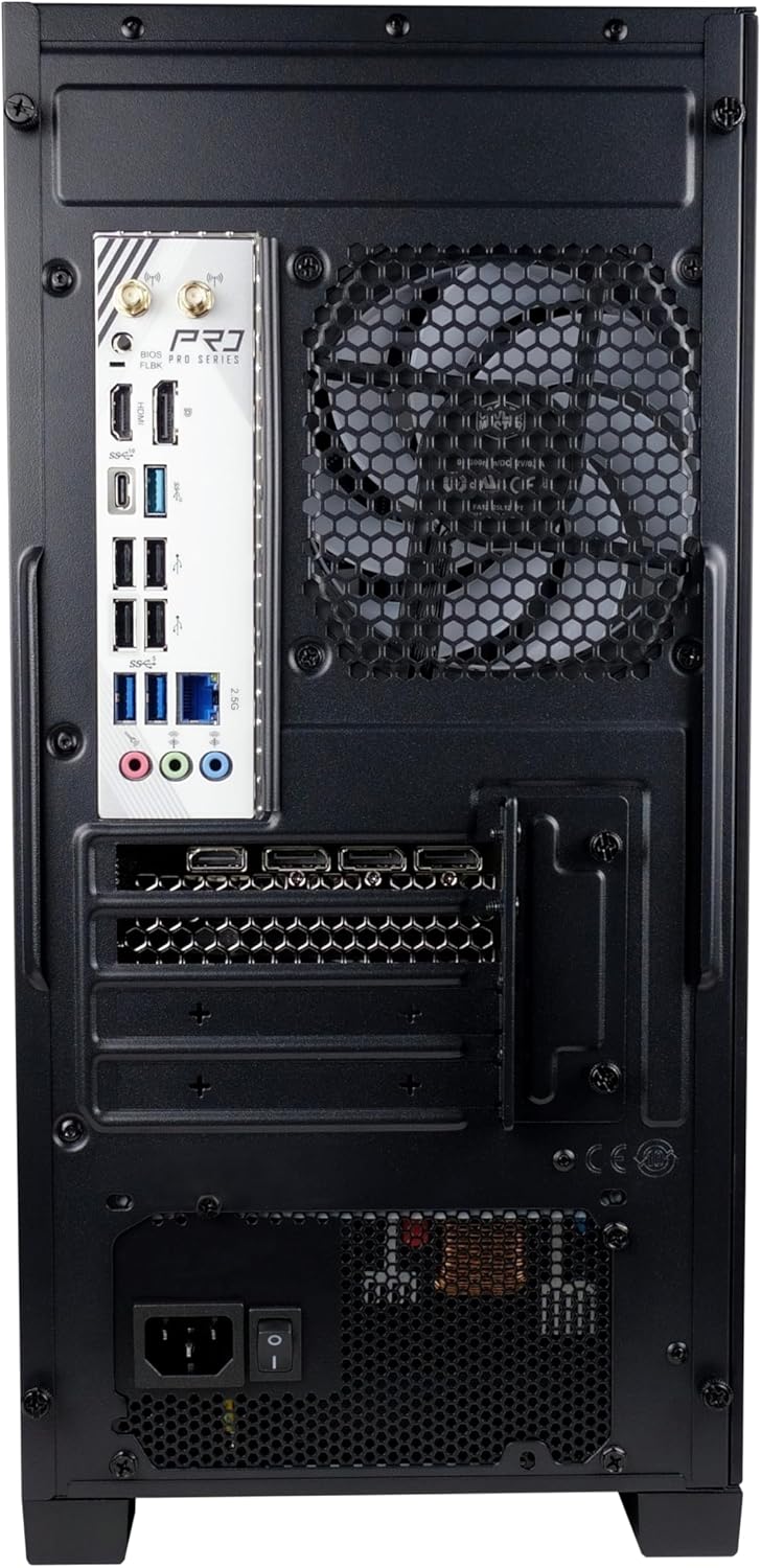 Windows 11 Pro comes pre-installed, and the system comes ready to go – just unpack, plug in and start. For modern connectivity, WiFi 6E, Bluetooth (antenna included – please connect for a stable connection). The 80+ bronze power supply ensures high energy efficiency to effectively reduce electricity costs.
