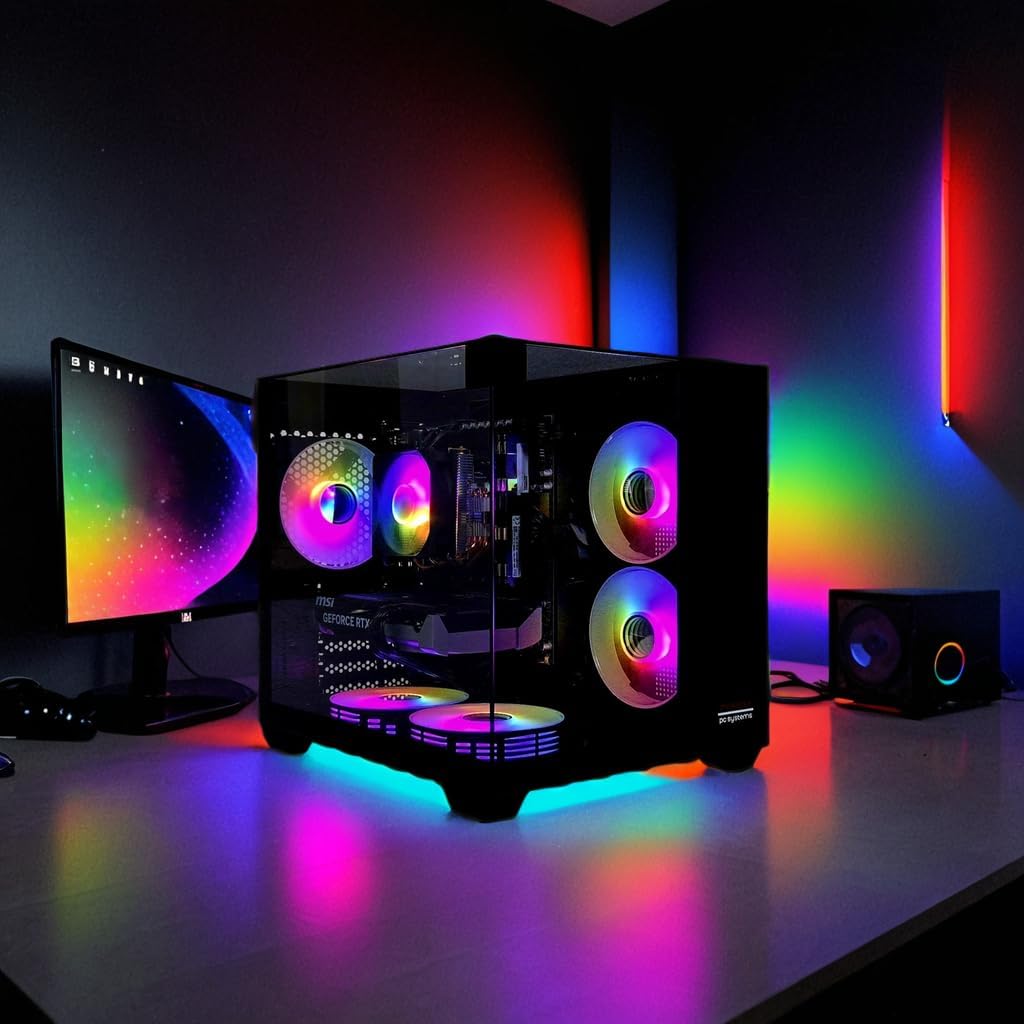 Unser Gaming-PC Phantom. Dank RGB-Beleuchtung mit Fernbedienung auch optisch ein Hingucker. Dank des schnellen Intel Xeon Prozessors mit 12 Kernen und 24 Threads, der leistungsstarken NVIDIA RTX 5060 8GB Grafikkarte mit RayTracing und bis zu 128GB RAM ist der Gaming-PC auch für die Zukunft gerüstet.