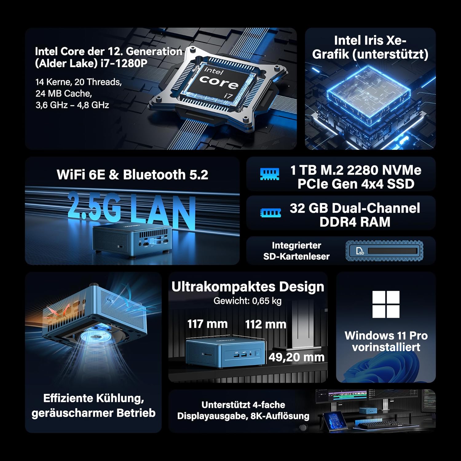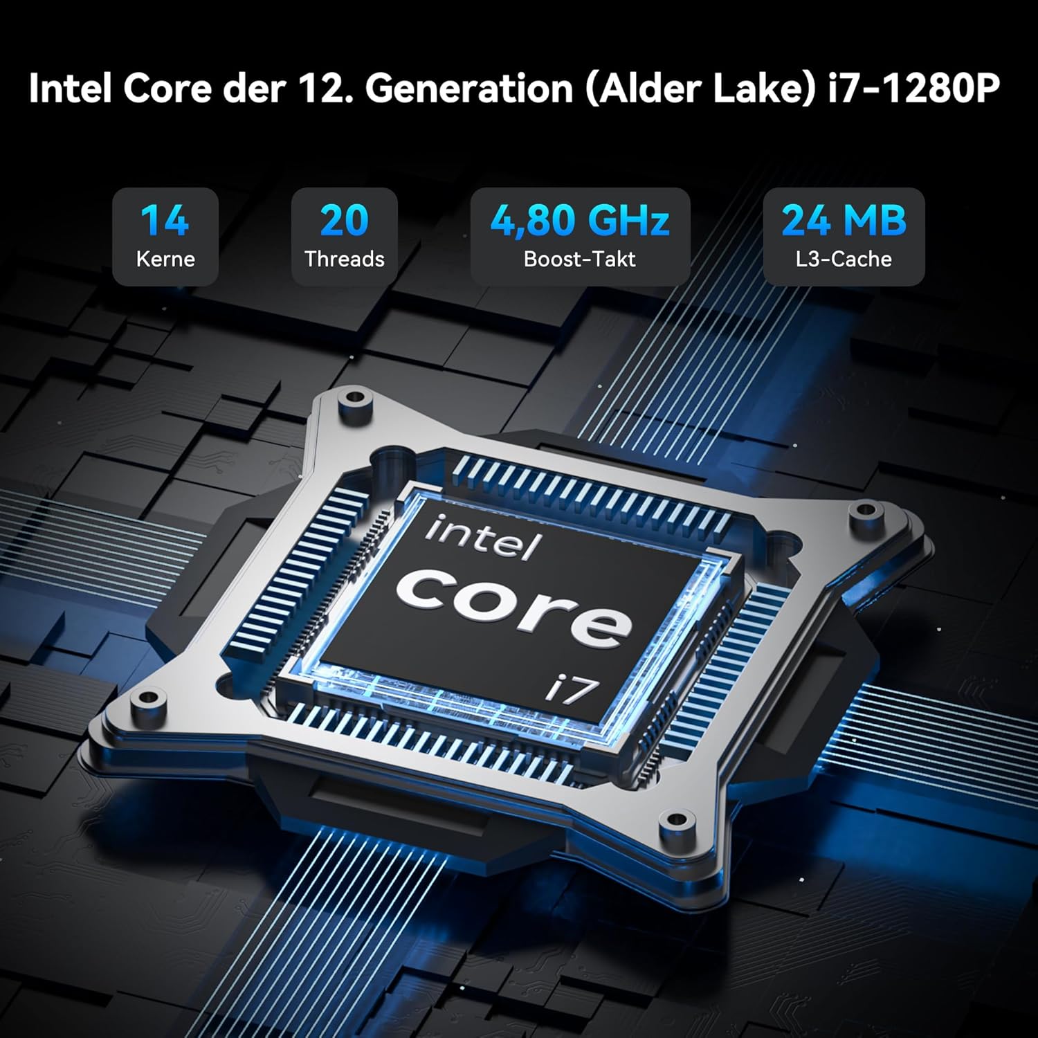 Intel Core i7-1280P: Die GEEKOM IT12 2025 Edition ist mit einem Intel Core i7-1280P Prozessor der 12. Generation ausgestattet, mit 14 Kernen, 20 Threads und bis zu 4,8 GHz. Die integrierte Intel Iris Xe-Grafik unterstützt die 8K-Ausgabe und sorgt so für eine hohe Bildqualität und flüssige Anzeige. Ideal für Büroarbeiten, Softwareentwicklung, Bildbearbeitung und andere professionelle Anwendungen. Einfach zu bedienen:
