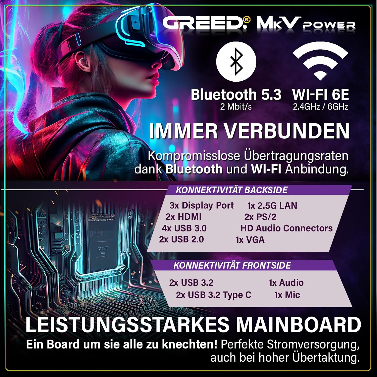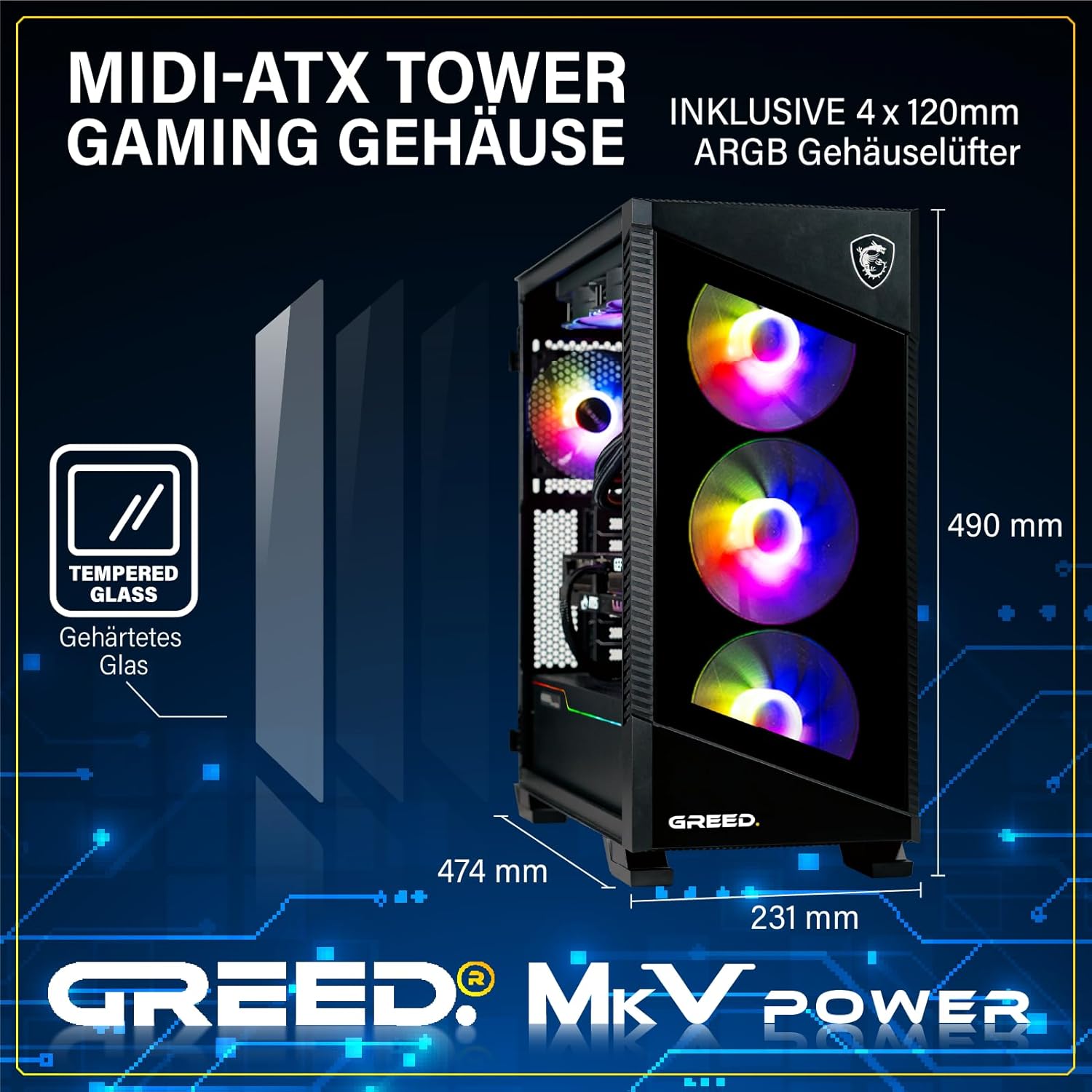 Greed® MK5 Power – High End Gaming PC – AMD Ryzen 5 9600X + Nvidia Geforce RTX 5070Ti 16GB – Fast RGB Computer + 4K Ray Tracing Calculator – 5.4GHz – 32GB DDR5 RAM – 1TB SSD – WLAN + W11 Pro