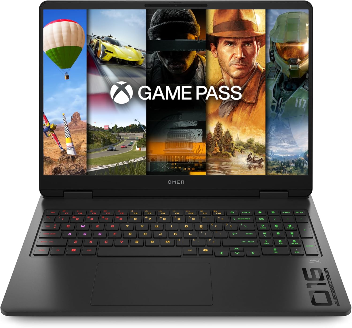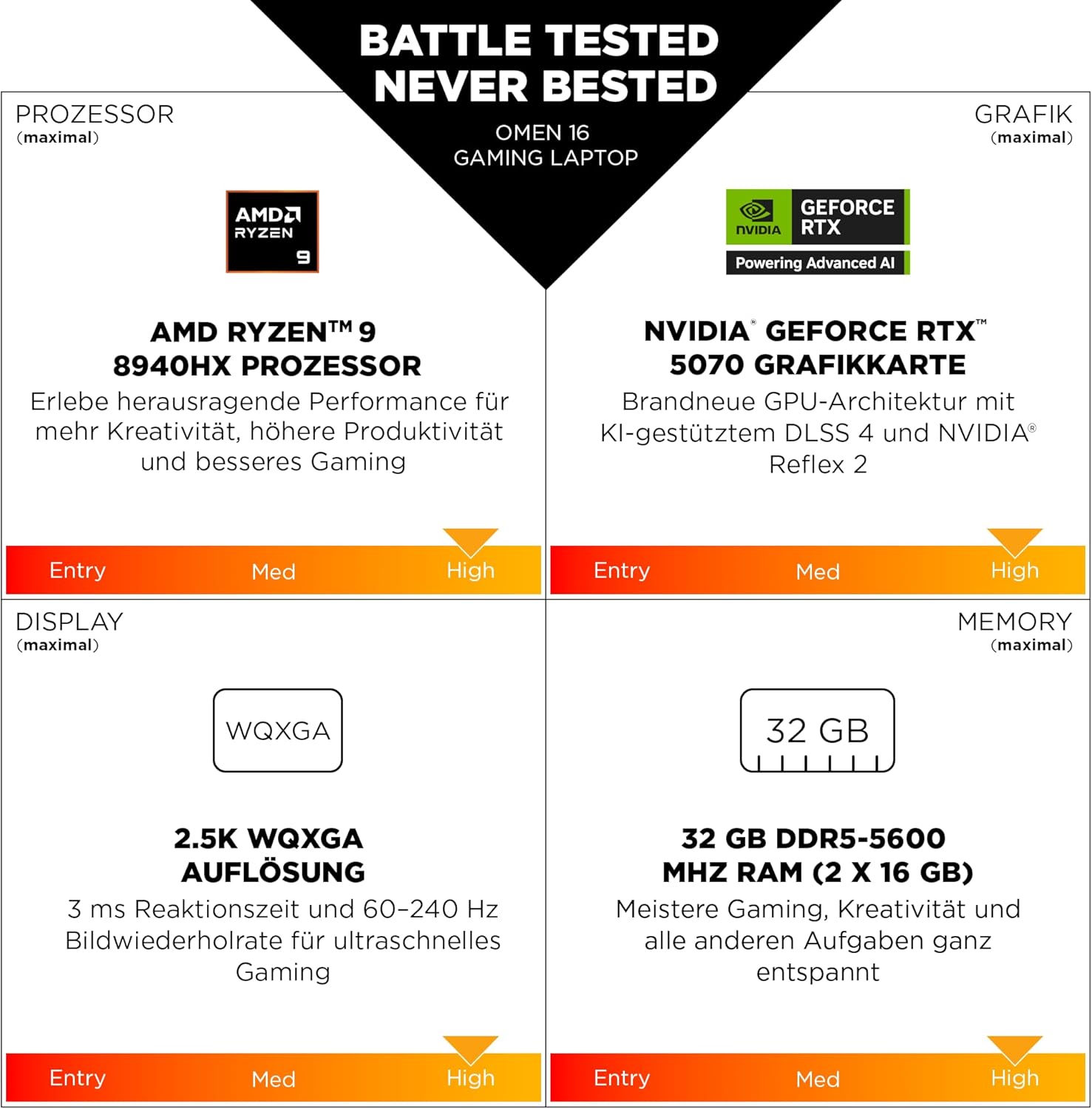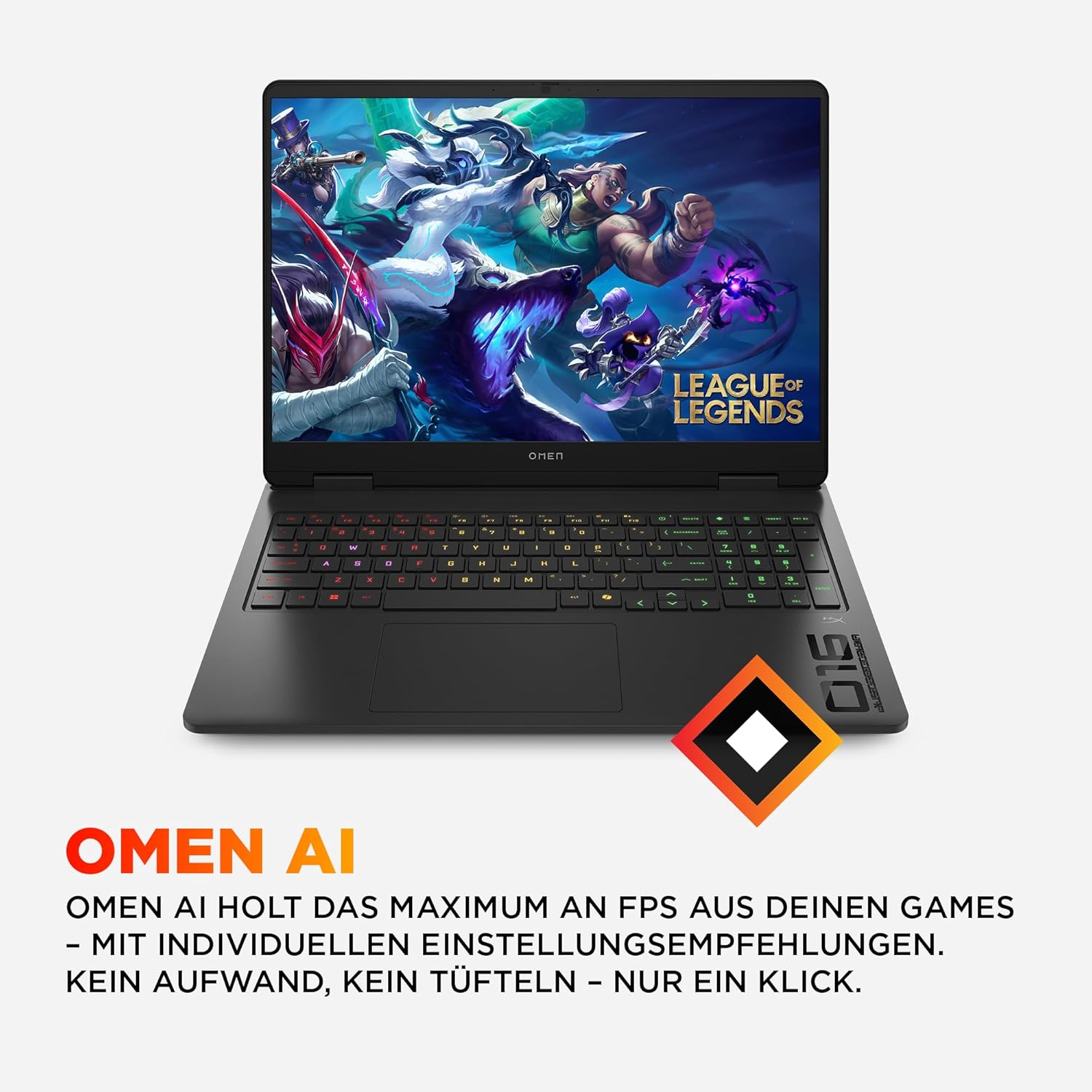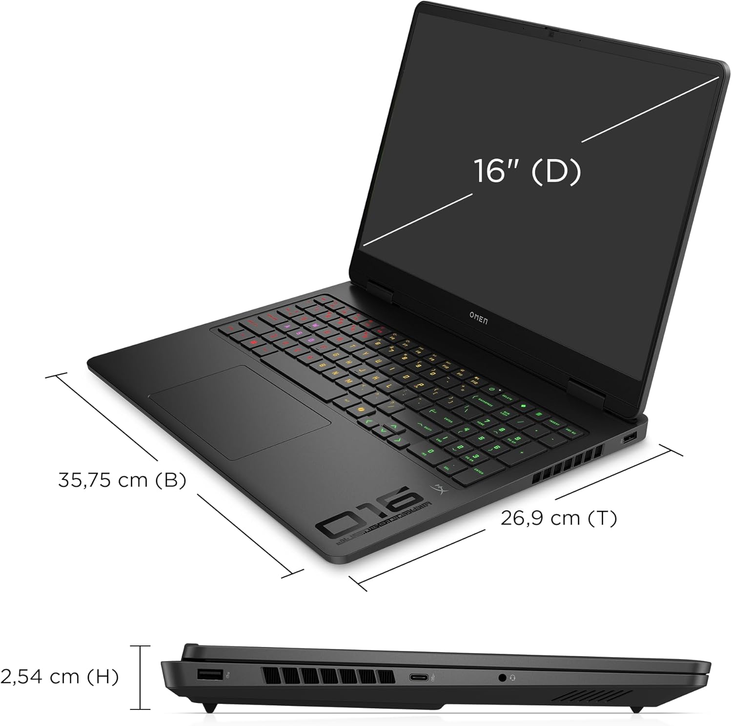 HP Omen Gaming Laptop, 16 Inch 2K WUXGA Display, 1920 x 1200, 16:10, 144Hz, AMD Ryzen 9 8940HX, NVIDIA GeForce RTX 5060 (8 GB), 16GB RAM, 1TB SSD, Win 11, 4-Zone RGB QWERTZ, Wi-Fi 6, Shadow Black