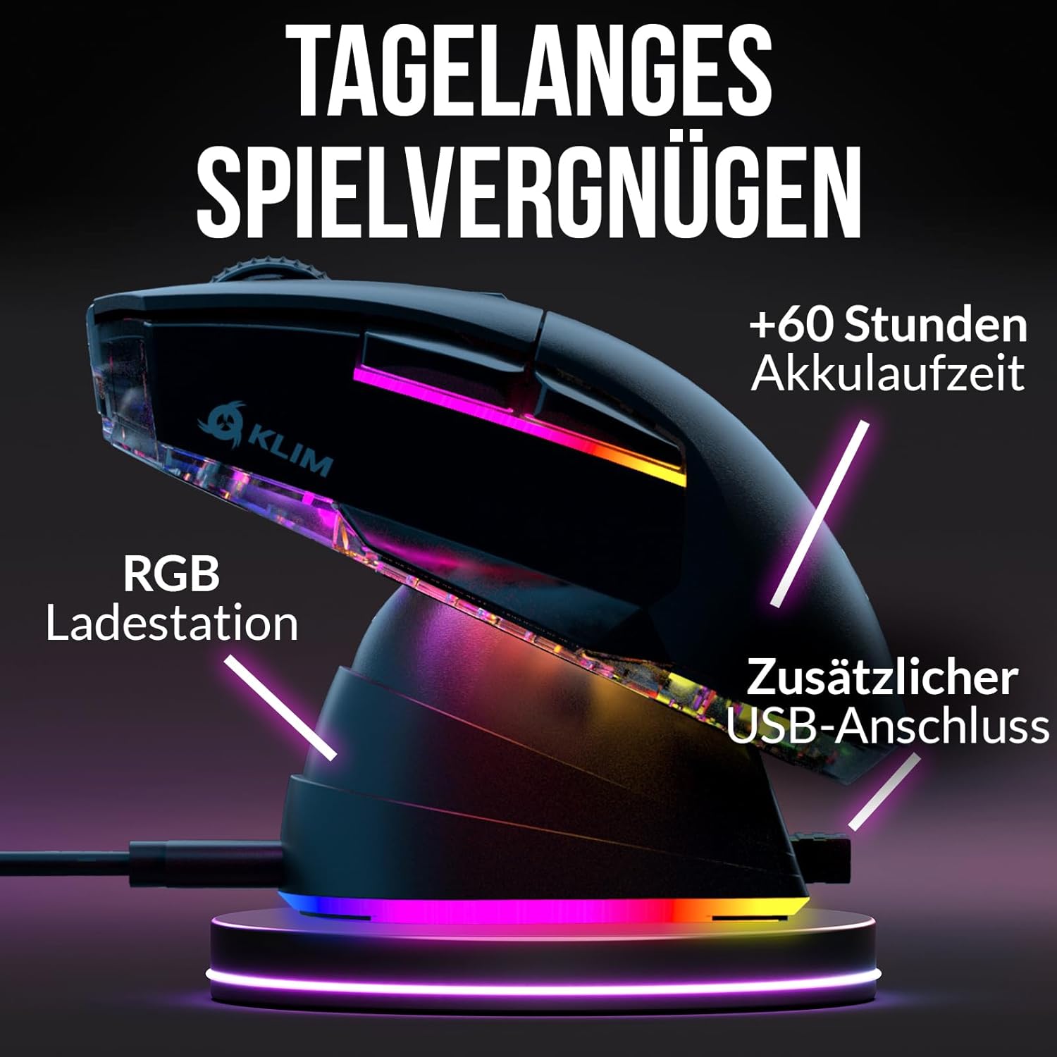 KLIM Blaze X RGB + Rechargeable Wireless Gaming Mouse with Charging Station + Long Lasting Battery + Up to 12000 DPI + Wired & Wireless Mouse PC, PS5, PS4, Mac + Black