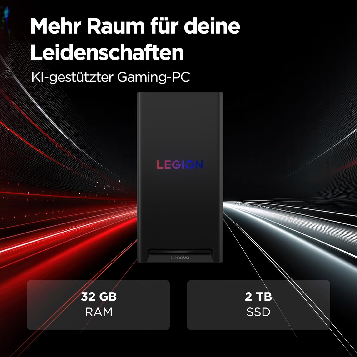 Tauchen Sie ein in die Welt des Gamings: Lenovo Legion T5 Gaming AI Desktop ist mit leistungsstarker Grafik, einer schnellen CPU und blitzschnellem RAM ausgestattet.