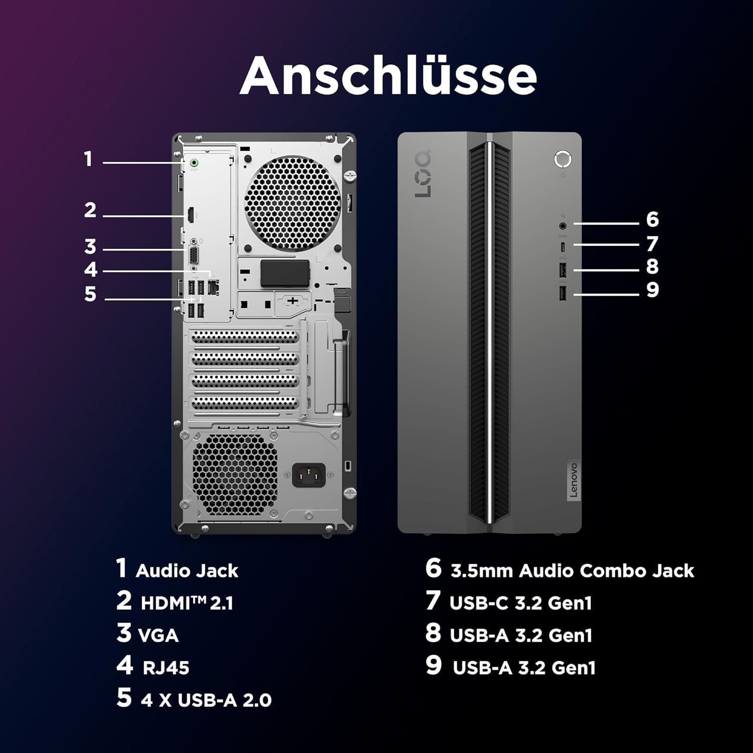 Tauchen Sie ein in die Welt des Gamings: Betreten Sie die Gaming-Welt mit dem Lenovo LOQ-Desktop. Es ist mit leistungsstarker Grafik, einem schnellen Prozessor und blitzschnellem Speicher ausgestattet.