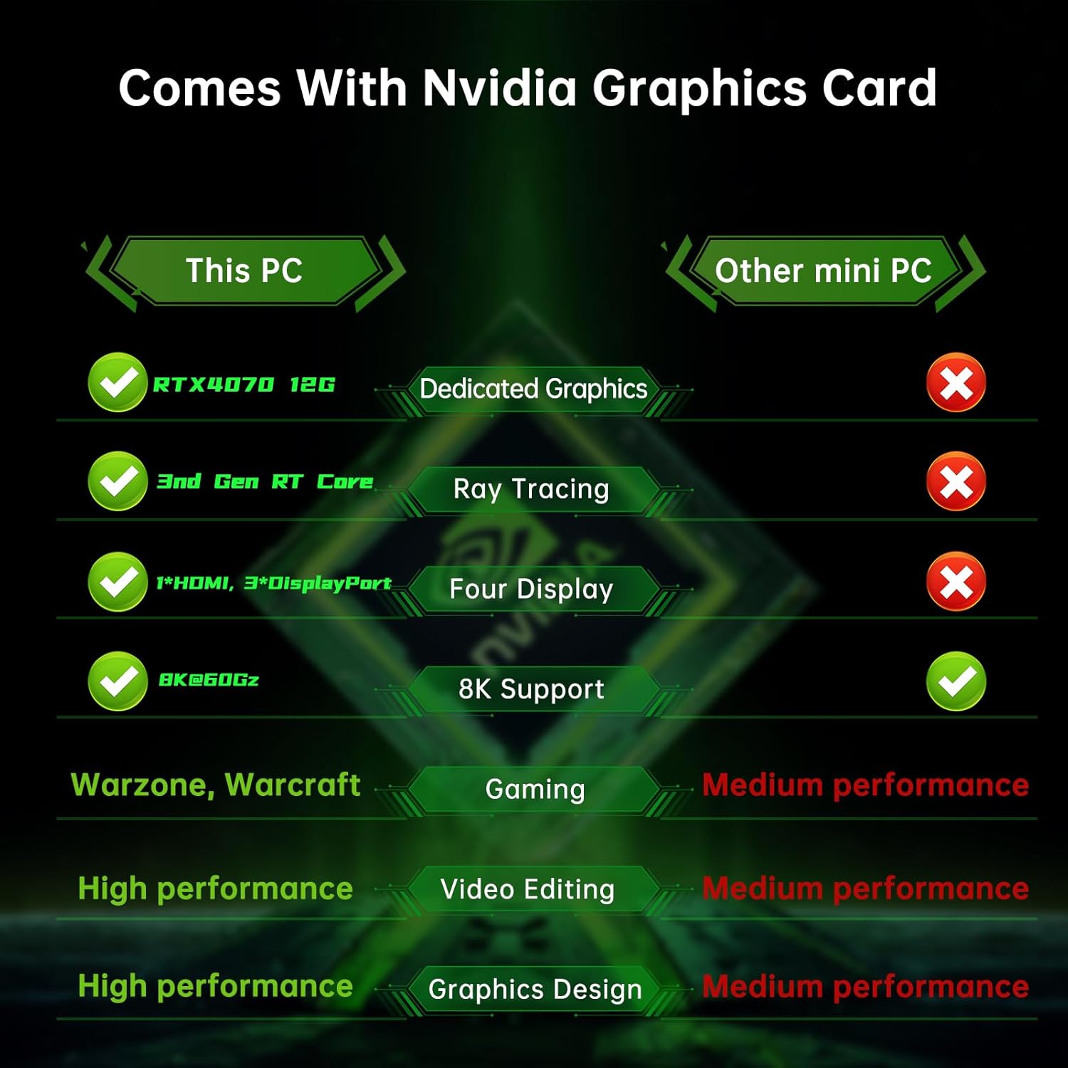 Leistungsstarke Grafikkarte: Ausgestattet mit einer GeForce RTX4070 12 GB GDDR6X-Grafikkarte, unterstützt Ray Tracing Core der 3. Generation und Tensor Core der 4. Generation. Ray Tracing simuliert die Eigenschaften von echtem Licht und ermöglicht Ihnen ein beispielloses Erlebnis atemberaubender Details in virtuellen Welten. DLSS (Deep Learning Super Sampling, unterstützt von Tensor Core) verbessert die Rendering-Effizienz und nutzt KI, um realistische Bilder zu erstellen.