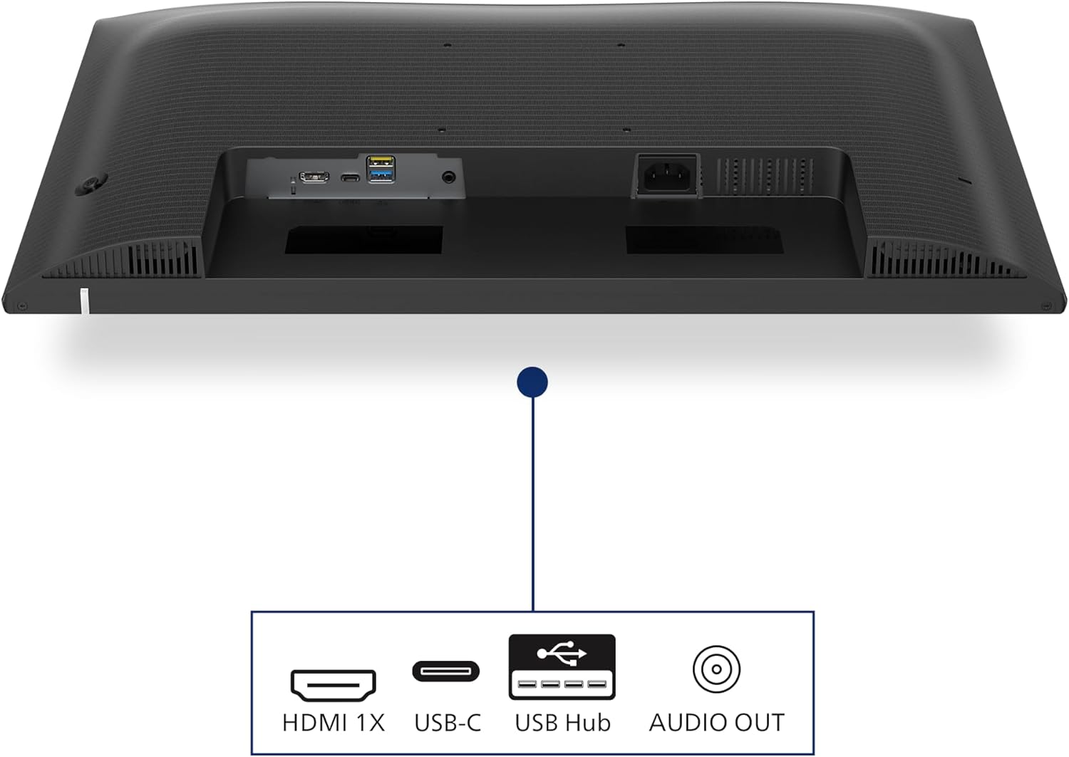Helligkeit/Kontrast: 350 cd/m² 1.300:1, Anschlüsse: 1x HDMI 1.4, 1x USB-C (65W PD), USB Hub 2x 3.2, 2x 2 Watt Lautsprecher