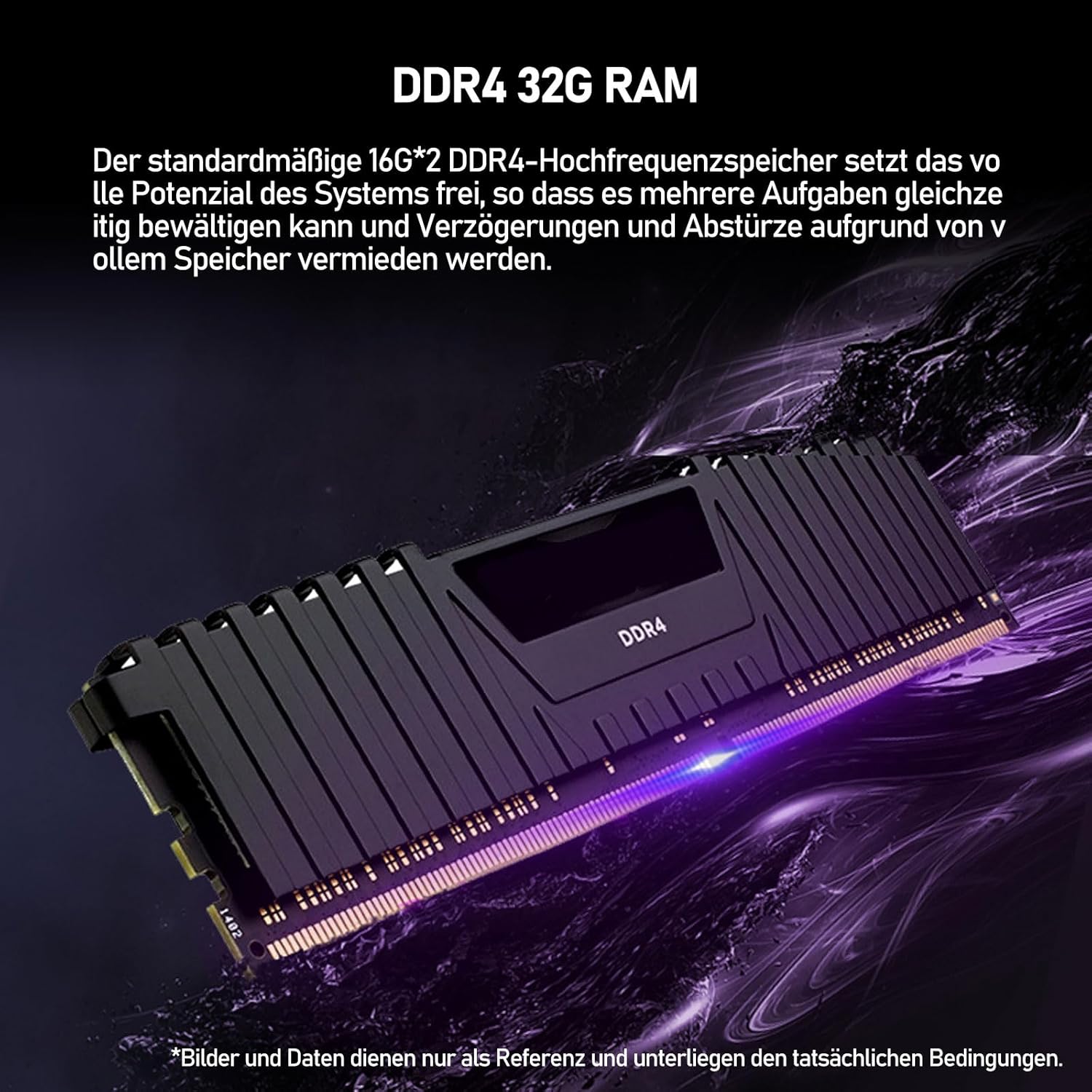 Arbeitsspeicher (RAM): 32 GB DDR4 RAM sorgen für unterbrechungsfreies Multitasking. Ob Browser-Tabs, Creative Suites oder ressourcenintensive Spiele, die Reaktionsgeschwindigkeit bleibt optimal, auch bei parallelen Anwendungen.
