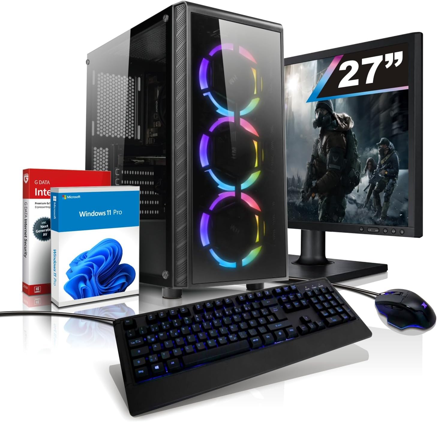 Tastatur und Maus: Gaming-Tastatur + Gaming-Maus, beide auf Wunsch beleuchtet (einstellbar)