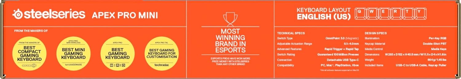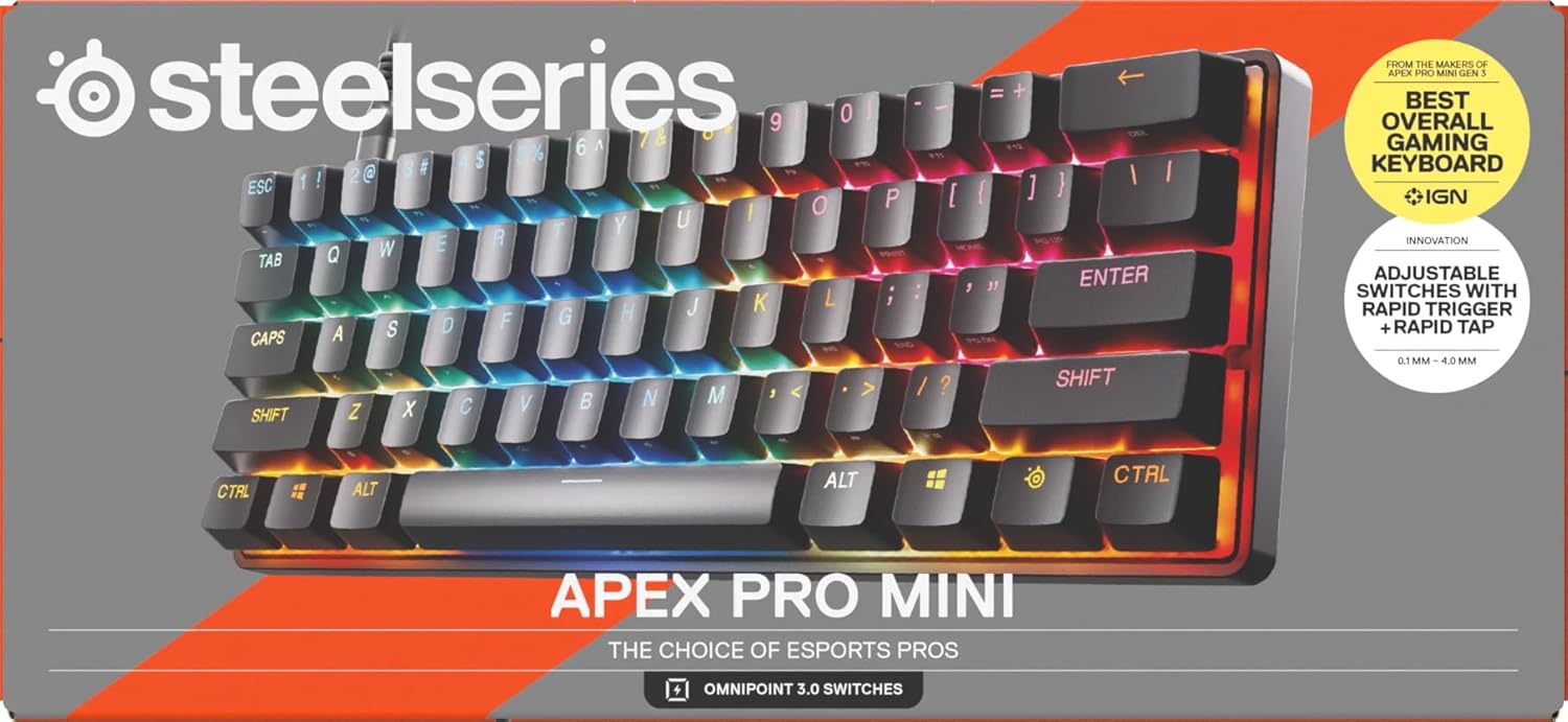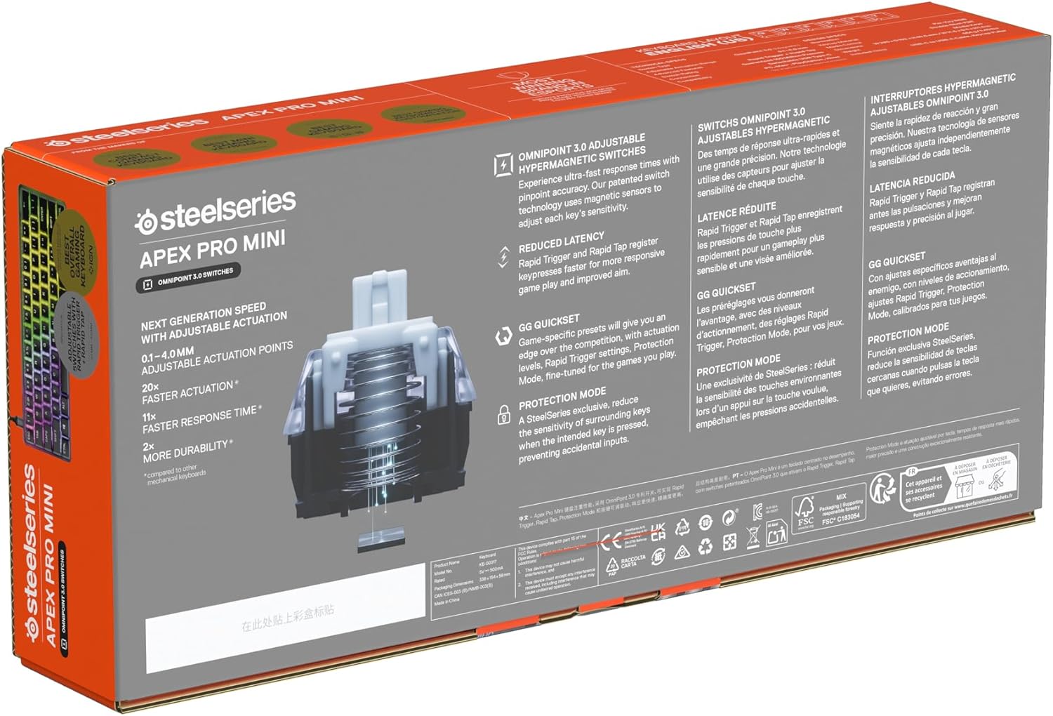 SteelSeries Apex Pro Mini Gen 3 Gaming Keyboard 60 Percent – Hall Effect Switches OmniPoint 3.0 – Adjustable Trigger Range – GG Quickset – Rapid Trigger – Rapid Tap-SOCD – German Layout QWERTZ