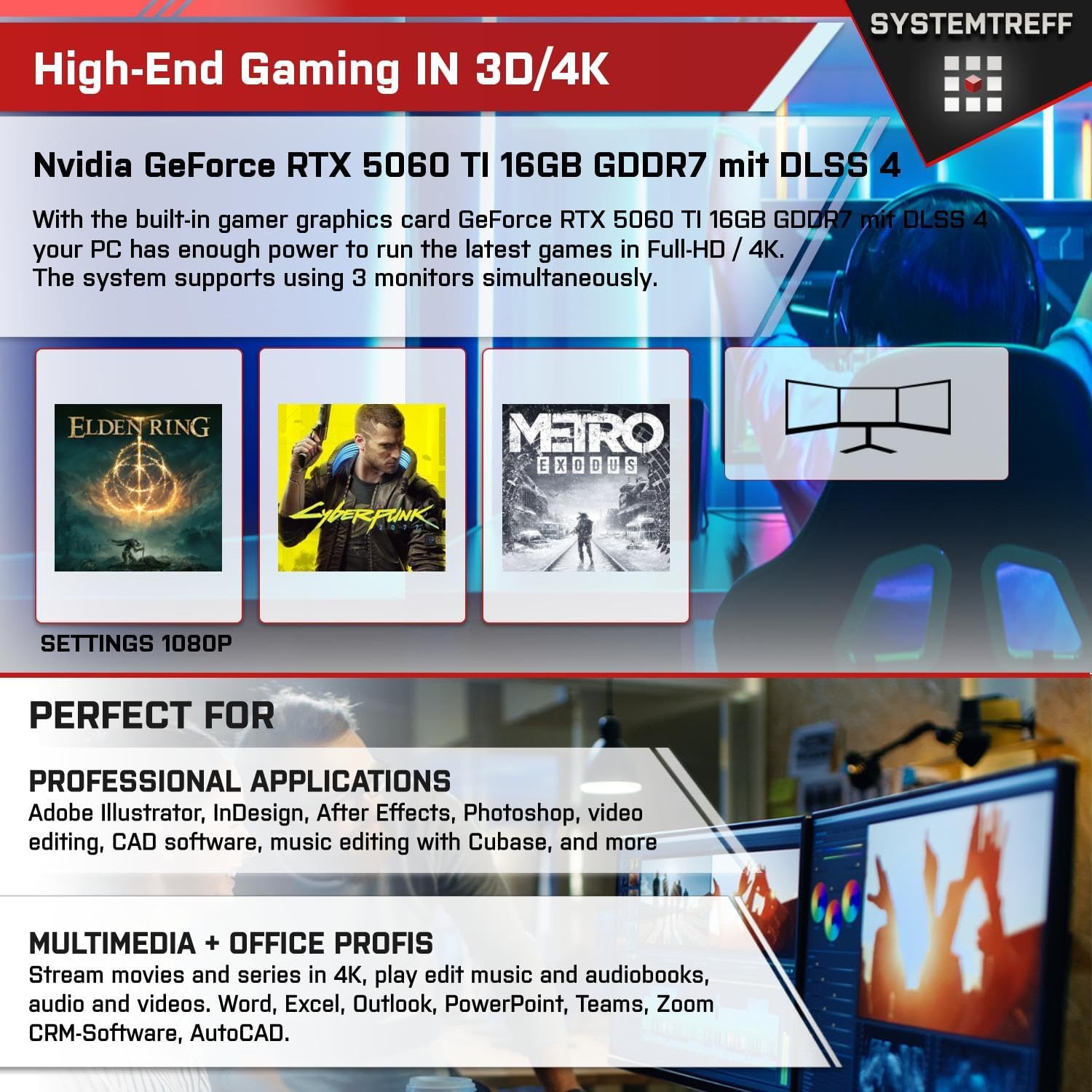 SYSTEMTREFF High-End Gaming PC AMD Ryzen 5 9600X 6×5.4GHz | Nvidia RTX 5060 TI 16GB DX12 | 1TB M.2 NVMe | 32GB DDR5 RAM | Windows 11 | Desktop Computer Calculator for Gamers, Gamers & Streamers
