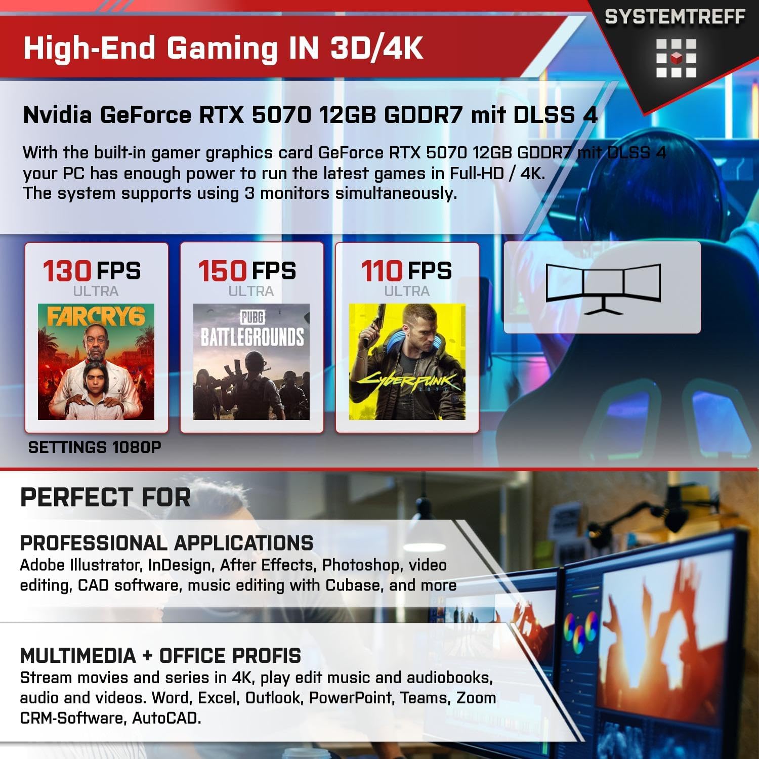 Made in Germany Unser erfahrenes IT-Team garantiert Ihnen beste Qualität für Ihren SYSTEMTREFF High-End-Gaming-PC. Dank der perfekt aufeinander abgestimmten PC-Komponenten erreichen wir eine hohe Kundenzufriedenheit.