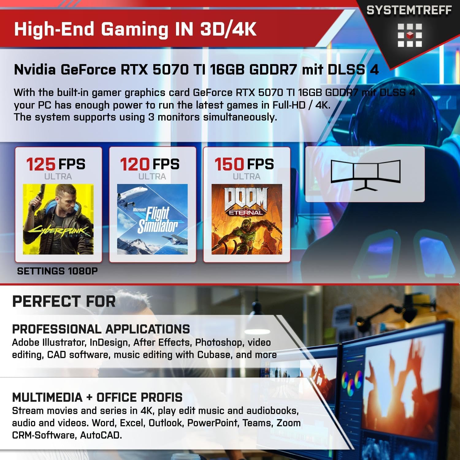 SYSTEMTREFF High-End Gaming PC AMD Ryzen 9 9950X3D 16×5.7GHz | Nvidia RTX 5070 TI 16GB DX12 | 1TB M.2 NVMe | 32GB DDR5 RAM | Windows 11 | WLAN Desktop Computer Calculator for Gamers, Gamers