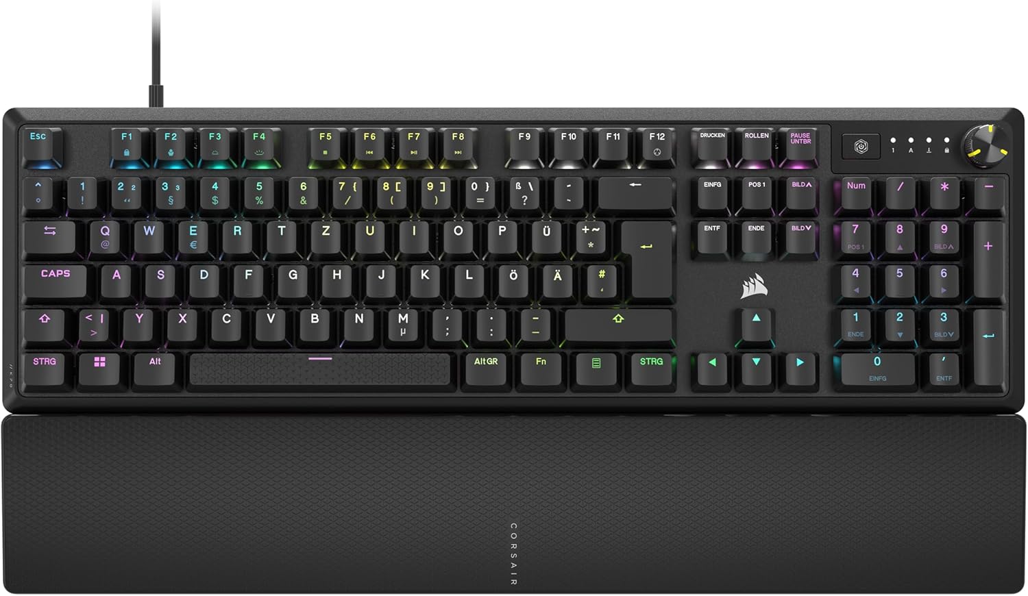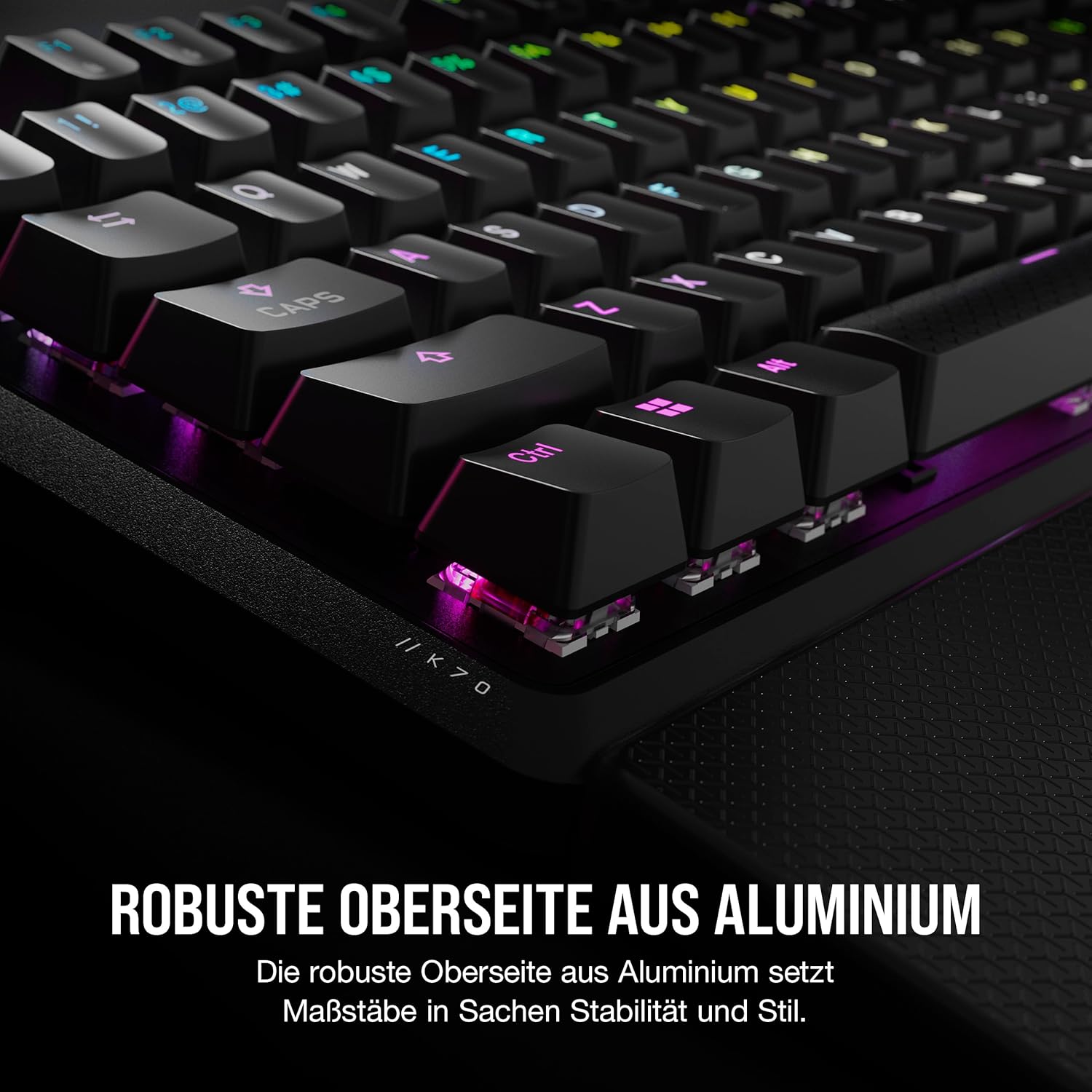 CORSAIR K70 CORE RGB Mechanical Gaming Keyboard with Wrist Rest – Lubricated MLX Red Linear Switches, SOCD, Sound Absorption, Media Control Wheel, iCUE Compatible, QWERTZ DE – Black