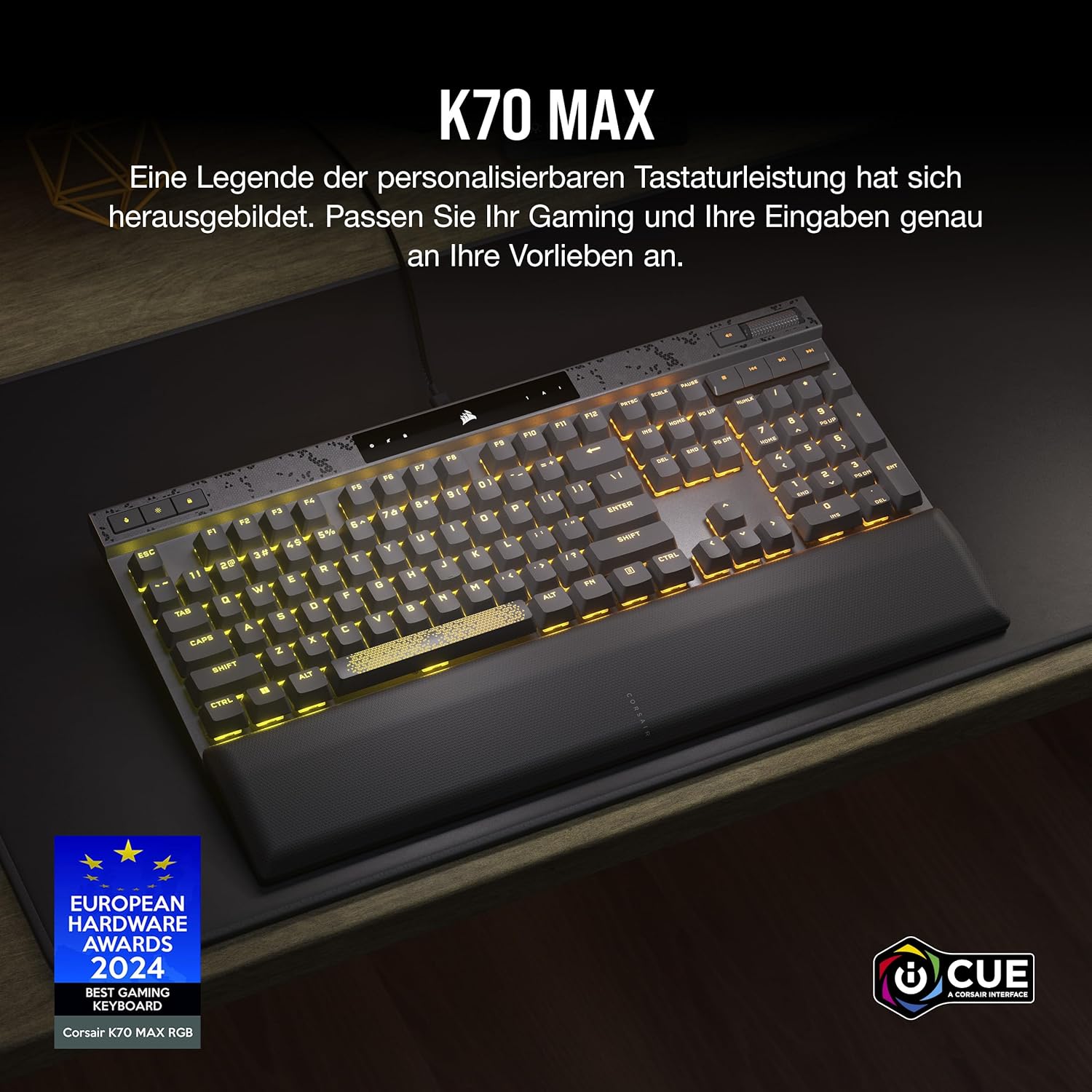 CORSAIR K70 MAX RGB Magnetic-Mechanical Wired Gaming Keyboard – MGX Adjustable Switches, SOCD and Rapid Trigger, PBT Double Shot Keycaps, Sound Absorption, 8000Hz, QWERTZ DE – Grey