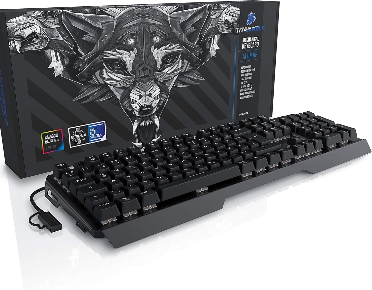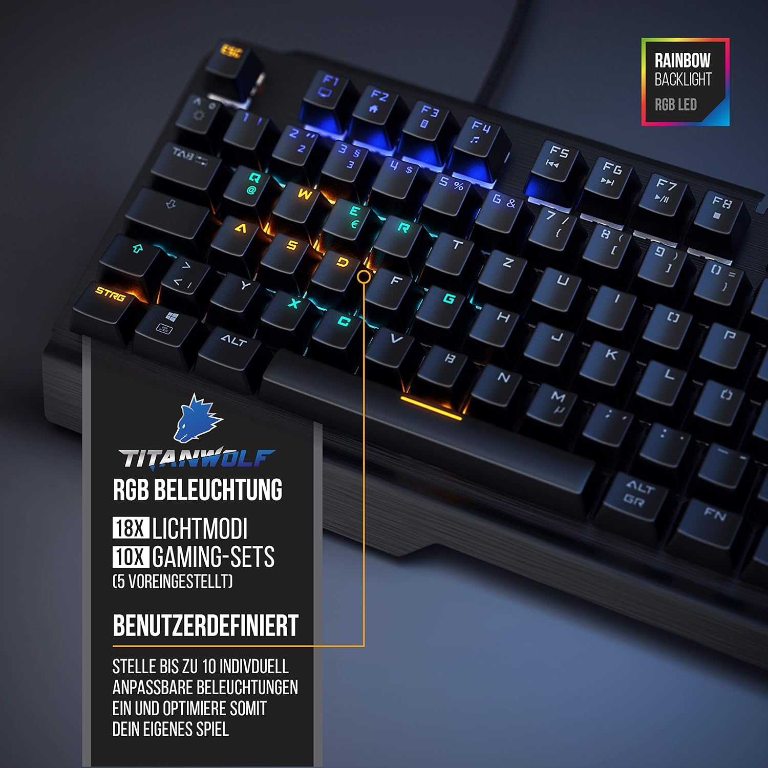 CSL-Computer Titanwolf – Mechanical Keyboard Alumar – Mechanical Keyboard Gaming – Gaming Keyboard – Anti-Ghosting – QWERTZ Layout DE – Full Key Rollover – RGB LED Backlight
