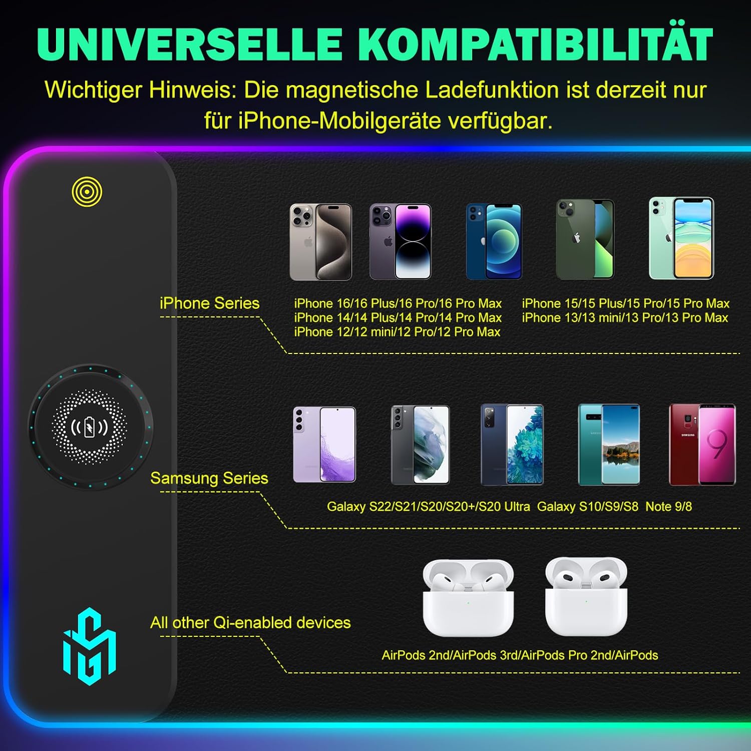 GIM PU-Leder Wireless Charging RGB Gaming-Mauspad 15 W