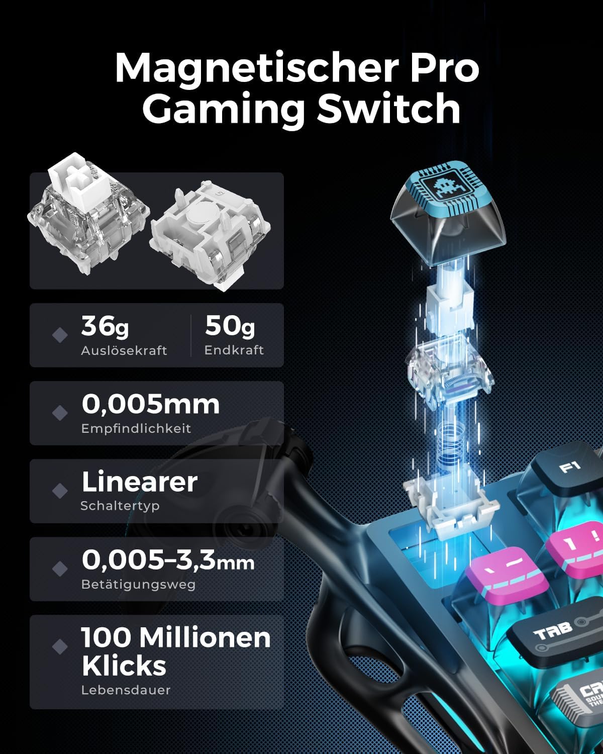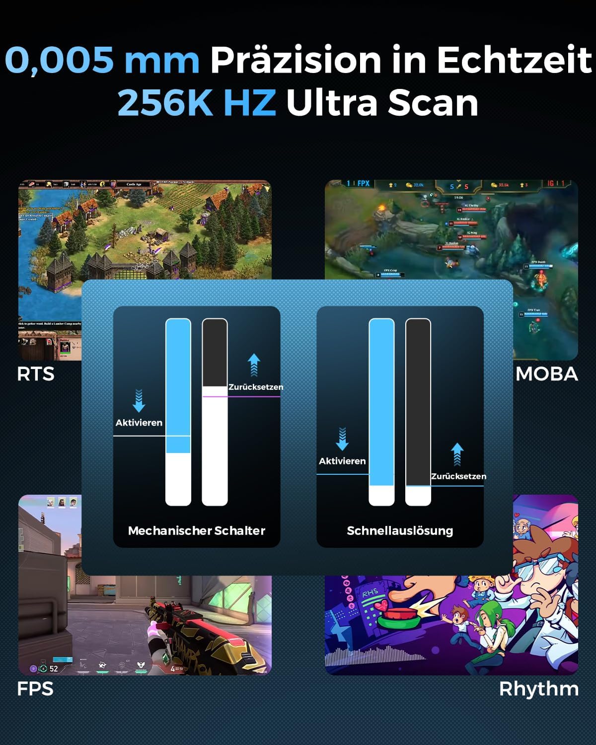 - ⌨️ Präzise Tastenanschläge: Ideal für FPS, Battle Royale & kompetitive Games