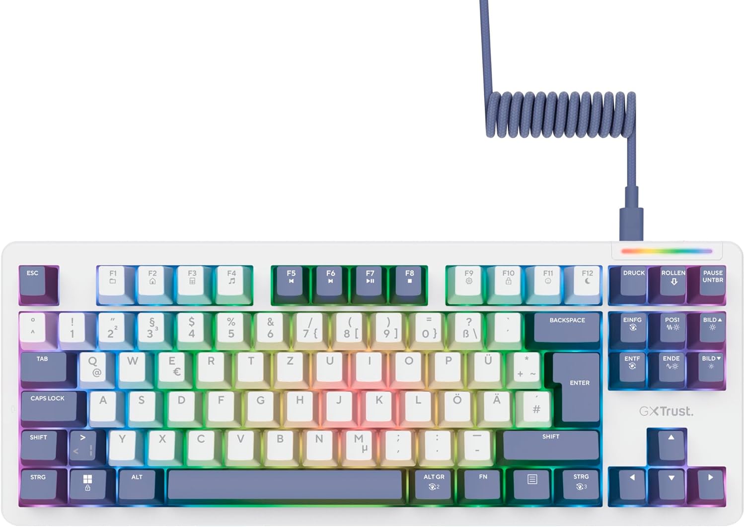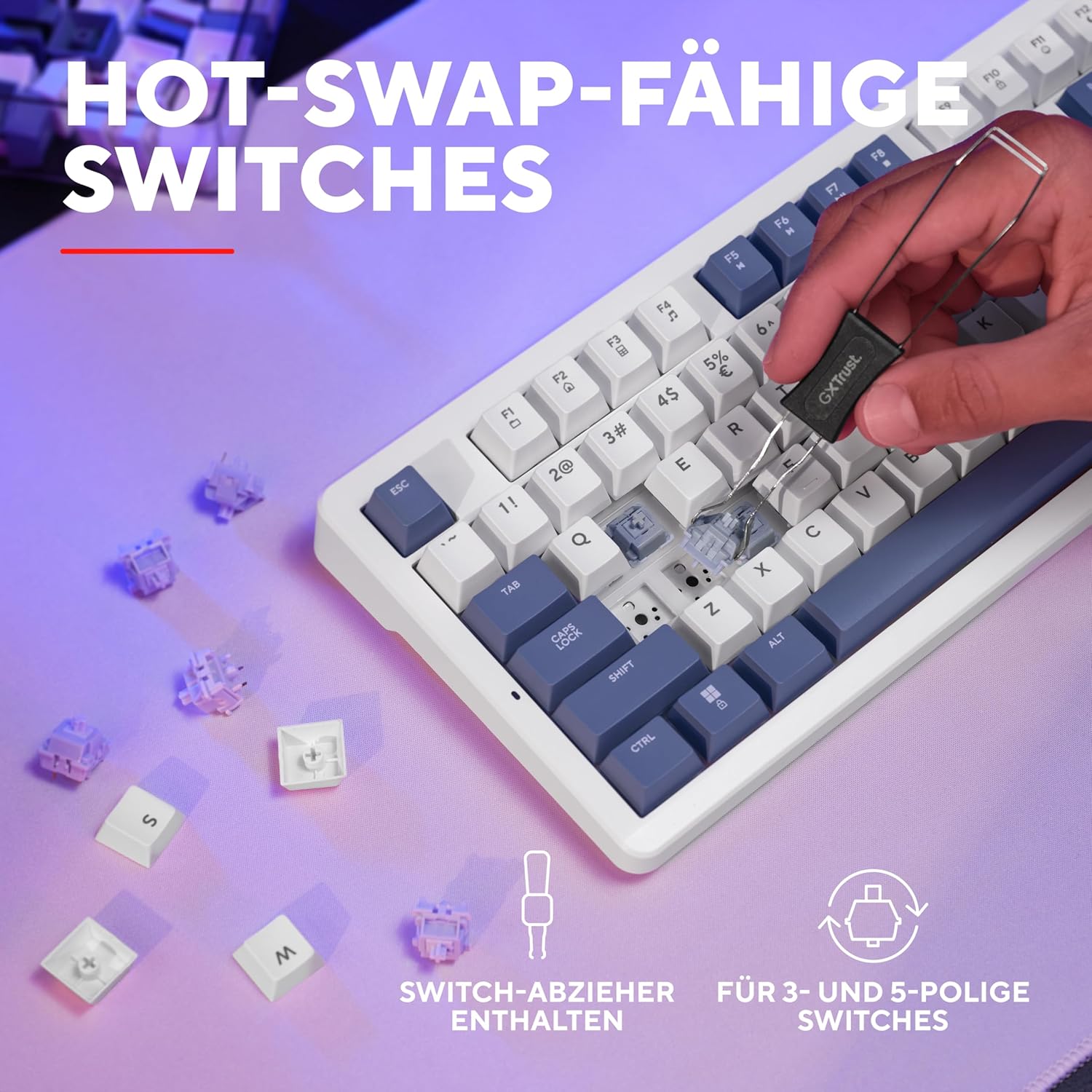 GXTrust 872 Xyra Gasket TKL Mechanical Keyboard QWERTZ Layout, Hot-Swap Creamy Gaming Keyboard 80%, USB Cable, RGB Lighting Programmable, 5-Pin Leobog Linear 60 m Switches for Gamers, White